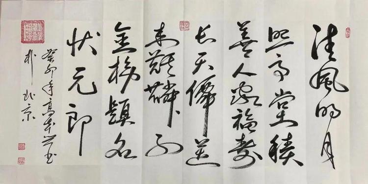2016年8月,走进安徽龙湖中学,交流宣传中国优秀传统文化,赠送作品一副学校收藏。