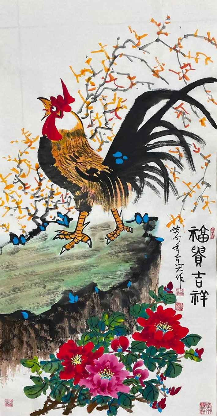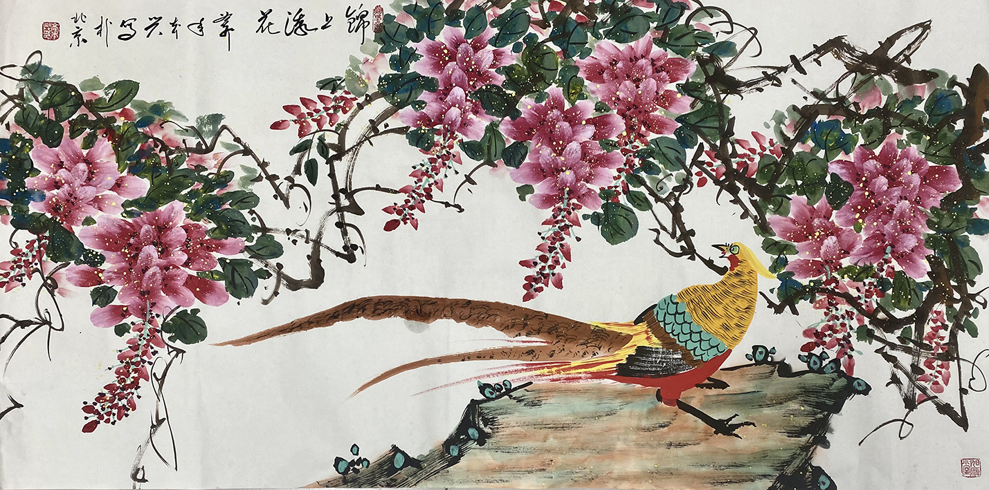 2024年1月10日创作一副国画《锦上添花》作品,由中国国家博物馆收藏。