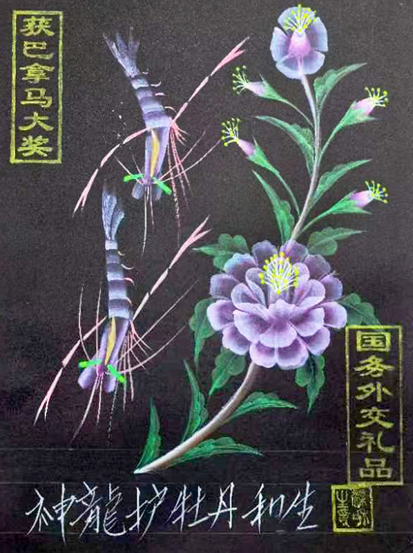 北京钓鱼台国宾馆收藏梁和生艺术作品《神龙护牡丹》