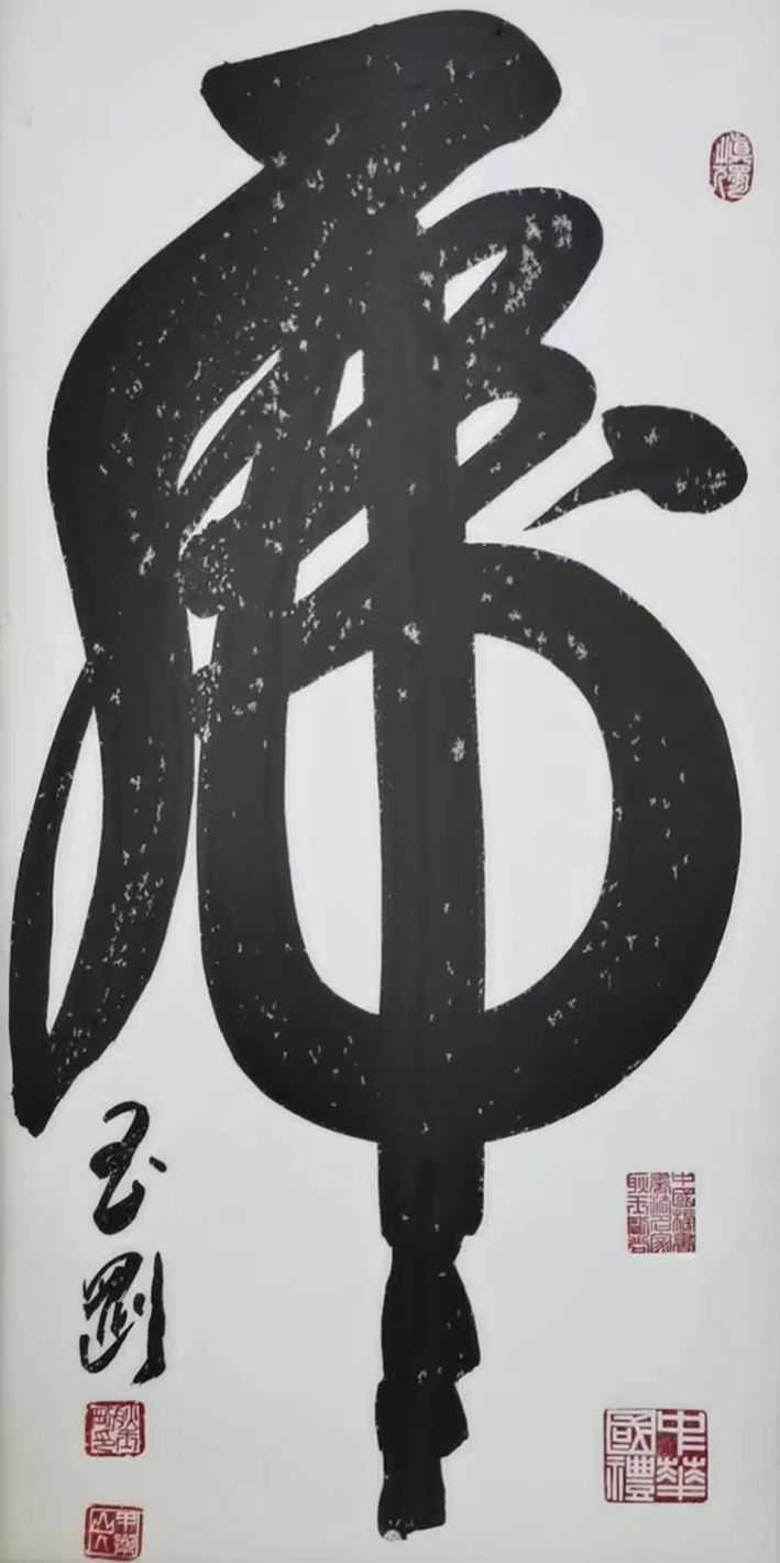 除了福龙虎书法,耿玉刚在榜书艺术方面也有着不俗的表现。他的榜书作品气势磅礴,笔力遒劲,给人以强烈的视觉冲击力和心灵震撼。他的榜书作品不仅仅是对传统书法的传承和创新,更是他对中国传统文化和艺术的热爱和追求的体现。