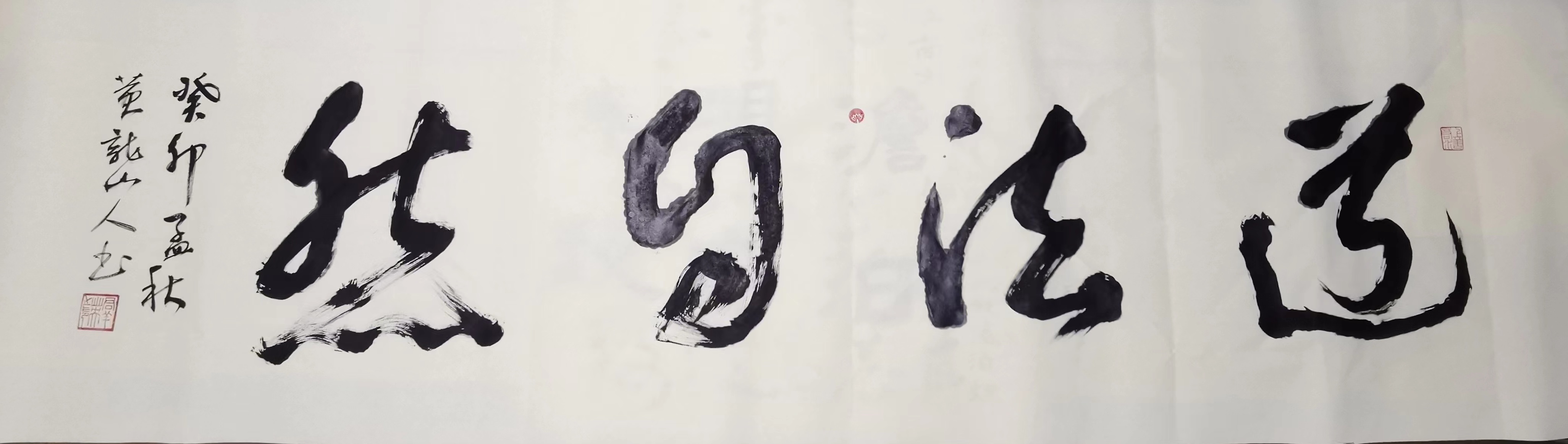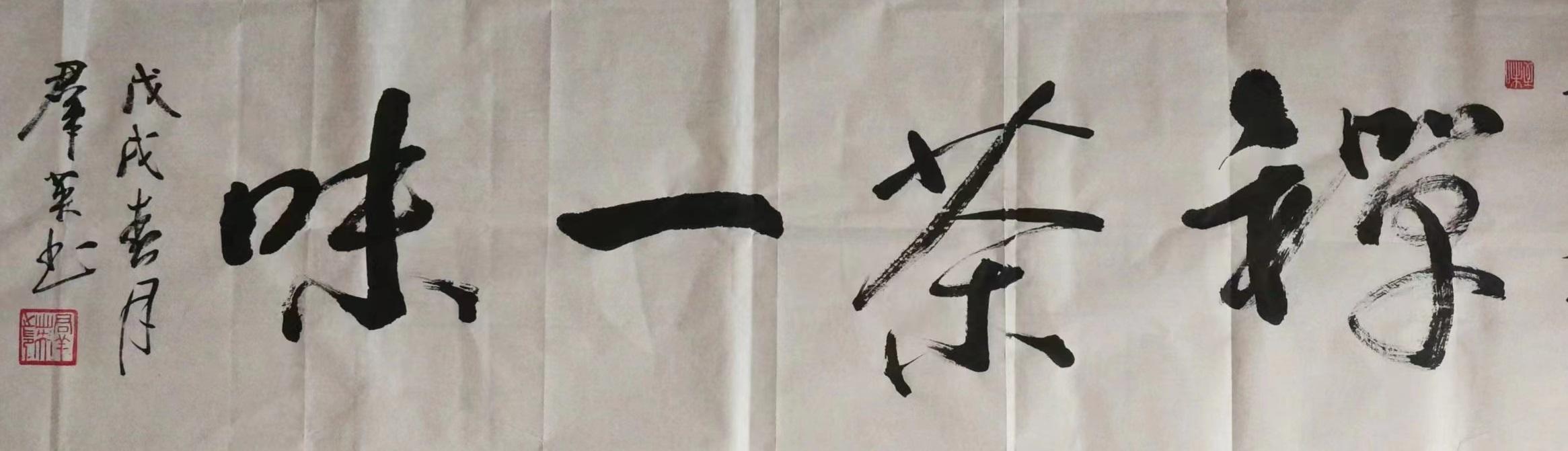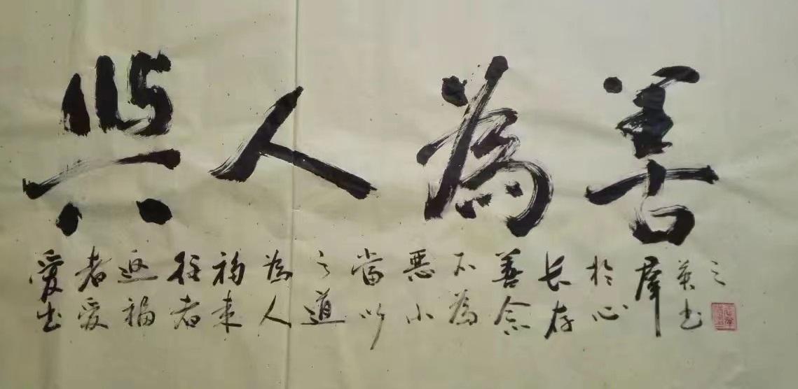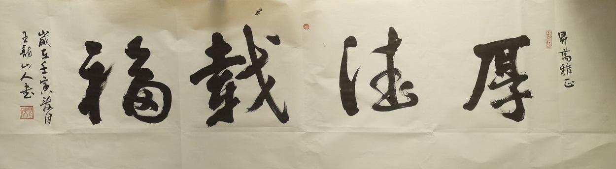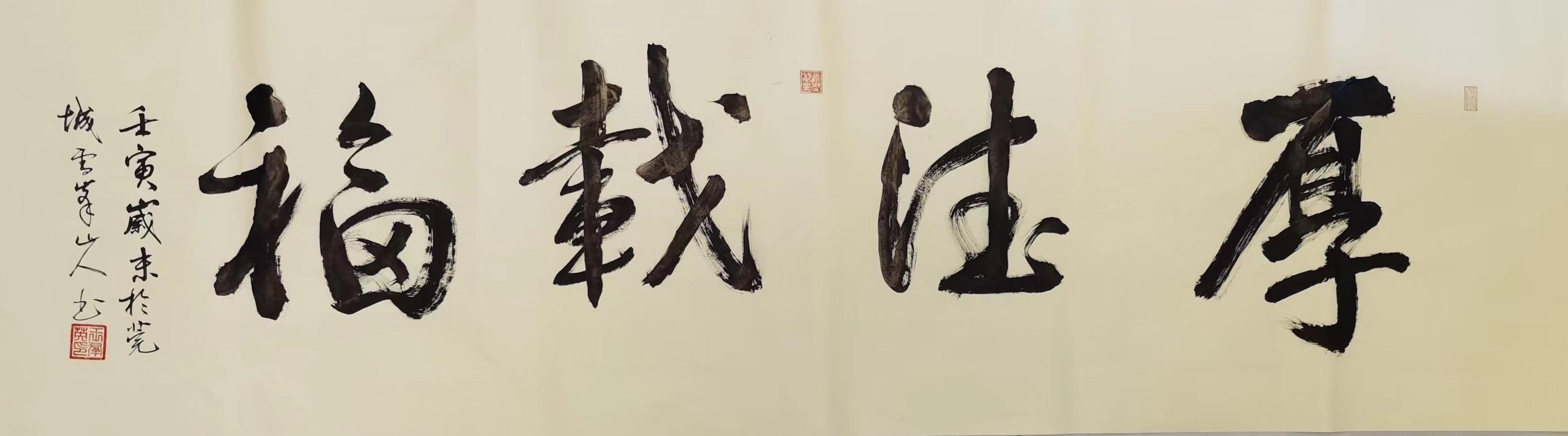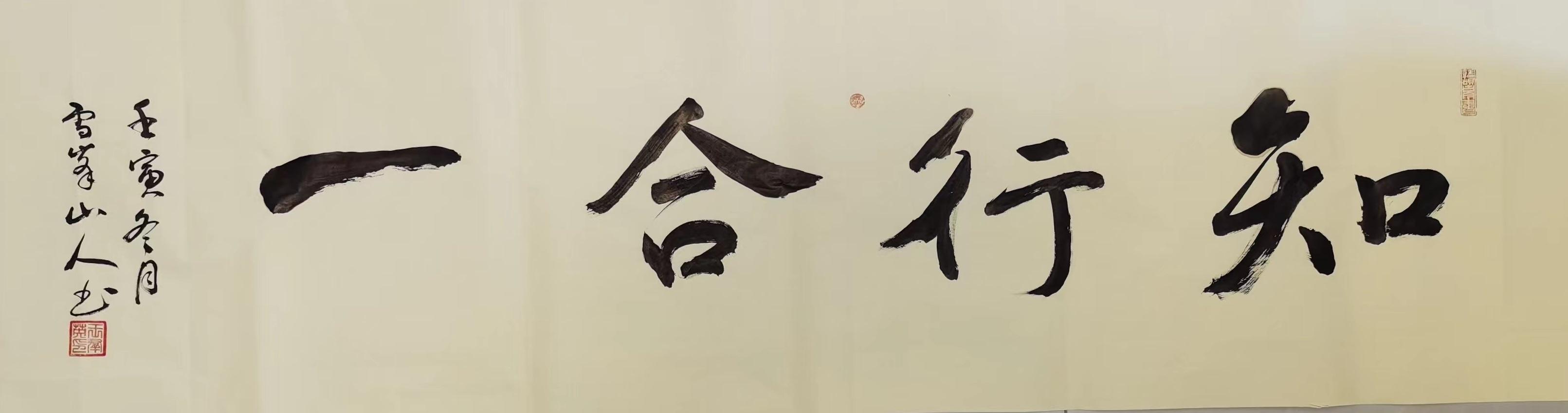 在行书作品中,王群英先生一直都是以二王法度为基础,同时对苏轼、黄庭坚等先贤的笔风余韵也是有所兼取,因此笔墨每每挥毫之际,皆是能出新意于法度之中,更是能寄妙理于豪放之外!此实乃自运在服古,临古须有我,笔笔点画力透纸背,字字开张气势正大,长者如秀整之士,短者则如精悍之徒,通幅书中可谓全无一丝一毫的妍美与工用,四字横幅彰显文以载道,诗词楹联更见文人风范,而这种风骨独树的书卷气概,自然也是得益于王群英先生多年来的笔墨积淀和精神立意,或寄以骋纵横之志,或托以散郁结之怀,书艺古雅,耐人品读!