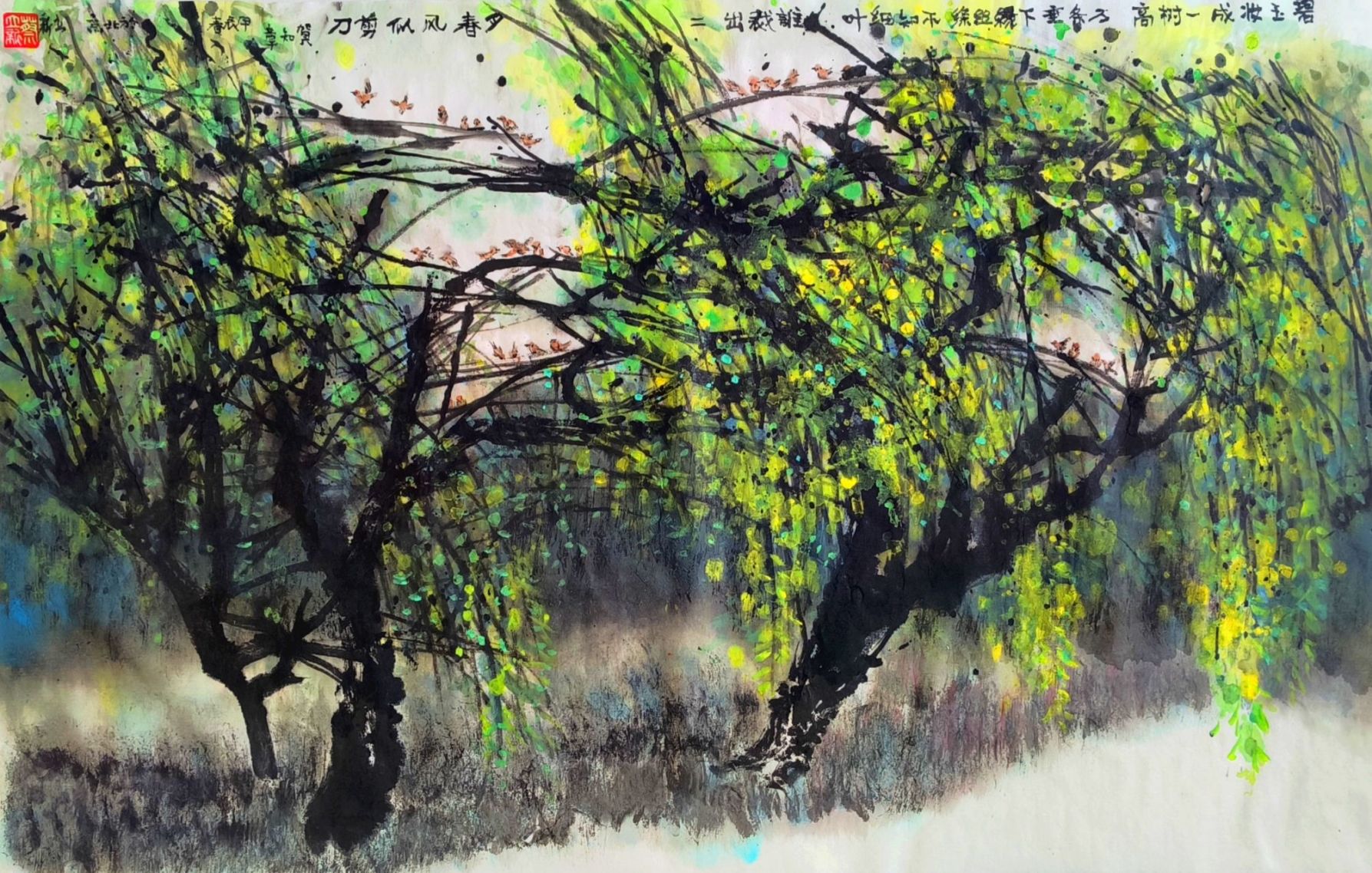 写意墨色中的精神漫游。欣赏蔡立新先生的画作,无论是山水还是花鸟,实际都是一种视觉与心灵上的双重享受。毕竟对蔡立新先生来说,较之于笔墨的挥毫余技,符合自身心境的情感流露,方才是写意创作的中心要妙,笔墨善状物,丹青陶性情,作为一名真正意义上的丹青画家,蔡立新先生已经是有为我们展现出了相当丰富的文人涵养与技道修为!路漫漫其修远兮,吾将上下而求索,假以时日,相信他也必将会取得更加非凡的艺术成果,我们对此充满期待。