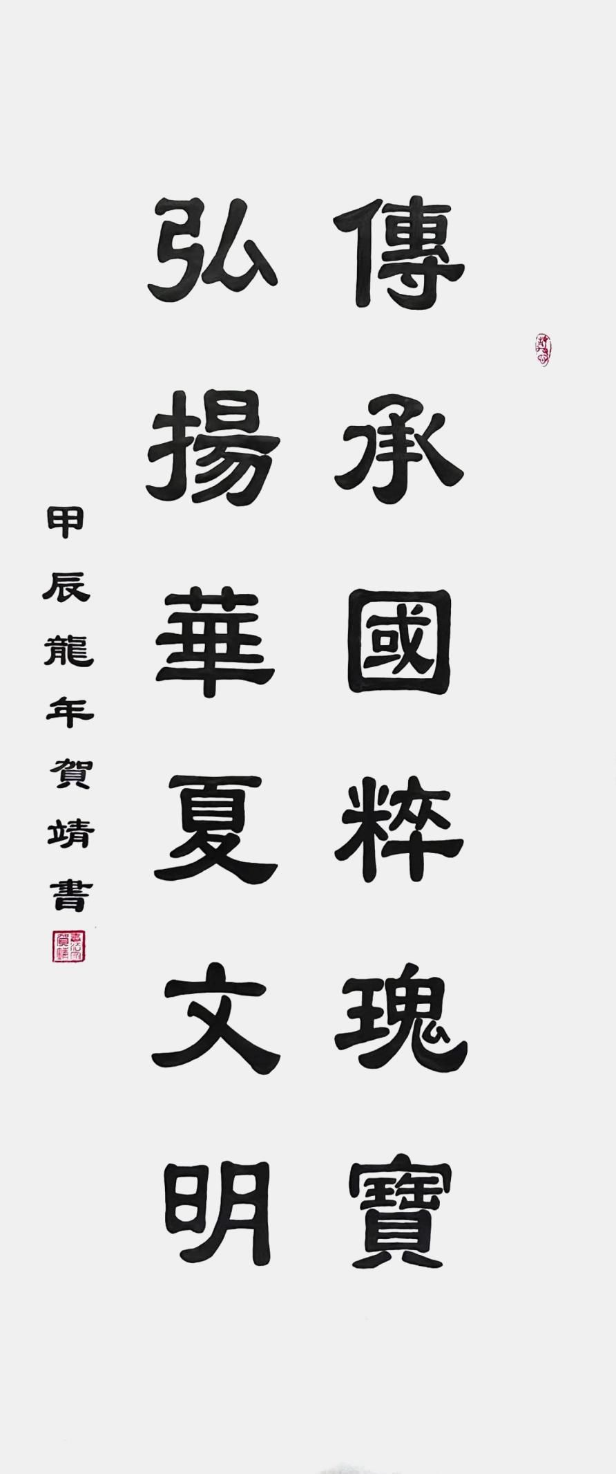 贺靖,女,汉族, 现为全国书画艺术委员会主席;全国人民艺术家信用管理中心书画艺术委员会主席,孔子美术馆客座教授;中华人民共和国国宾礼特供艺术家;中国文化艺术国际传播大使;中国书画艺术形象大使;国家高级书法师;国礼艺术家;一级书法师。被授予享受特殊津贴专家荣誉称号!