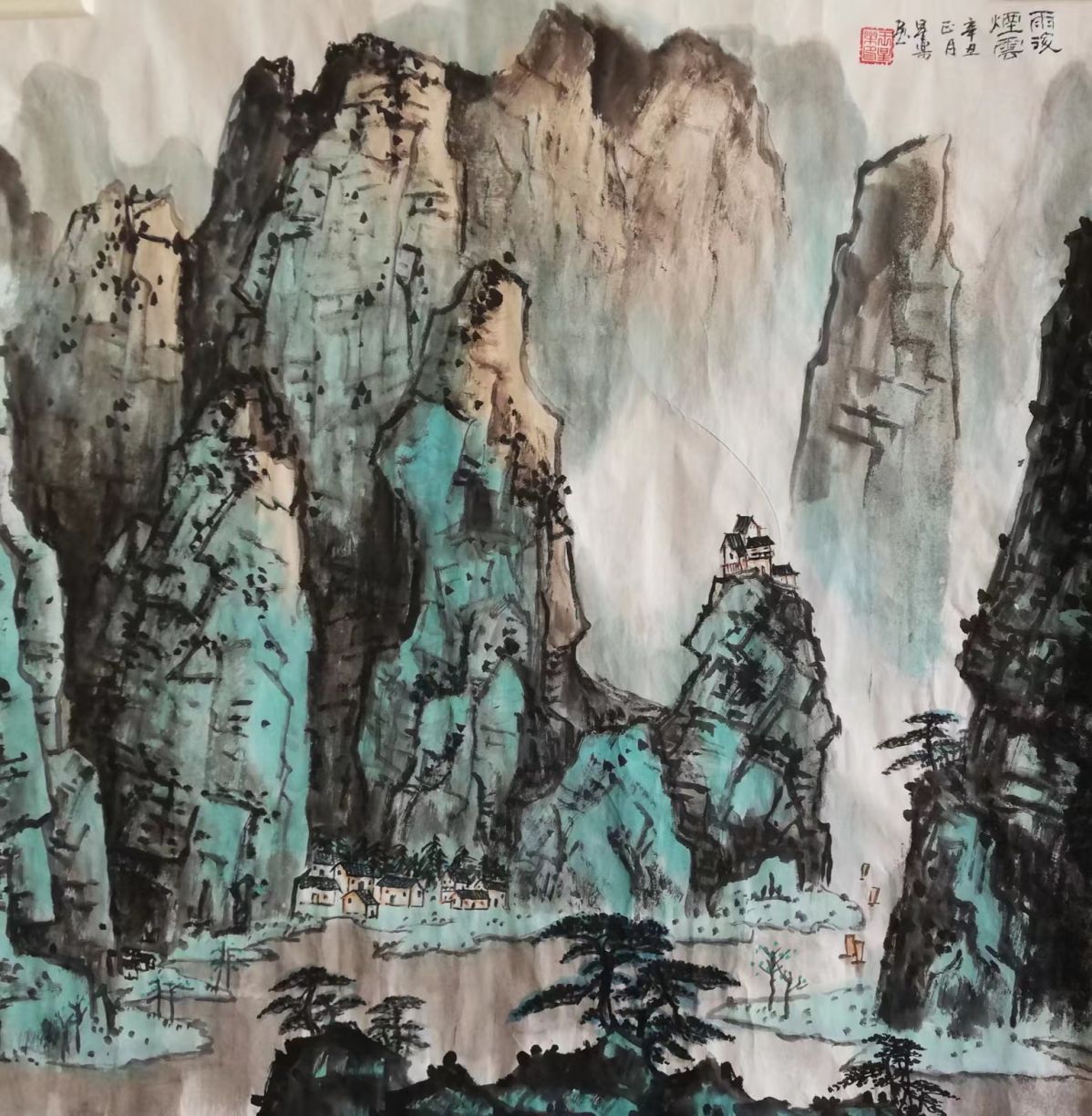 2016年画的'湘西烟云'应邀在美国展出被纽约长岛大学永久收藏。