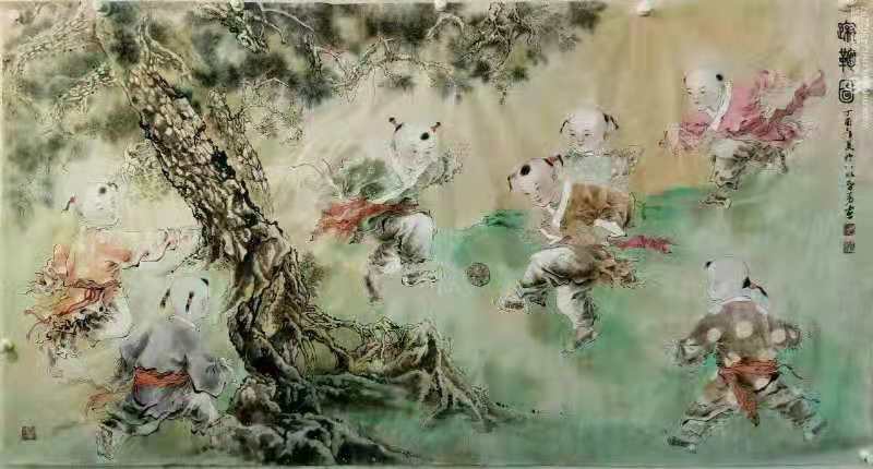 毛智勇人物画作品传神细腻,涉猎广泛,雅俗共赏,深受收藏爱好者青睐。他天资聪慧,除国画人物,山水、花鸟亦佳。同时在插图插画、连环画、雕塑、景泰蓝工艺画、陶瓷手绘等其他艺术领域均有广泛建树,尤以齐文化为背景的蹴鞠图见长,受到广大收藏爱好者的一致喜爱和好评。