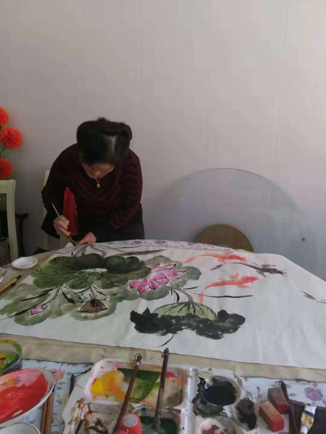 耿玉香 女 山东济南人1958年生。现为中国北方书画院副院长,中国孔府书画院,山东炎黄书画院花鸟画师,济南文物保护与收藏协会书画研究会常务理事,中国工艺美术家协会会员,中国王羲之书画艺术研究院会员。耿玉香自幼喜爱绘画。退休以后想事成专事绘画,亲拜著名画鱼大家冯增木为师,苦练技法,艺事日益精进。画师勤奋刻苦,且富悟性,画的鱼栩栩如生,活灵活现。