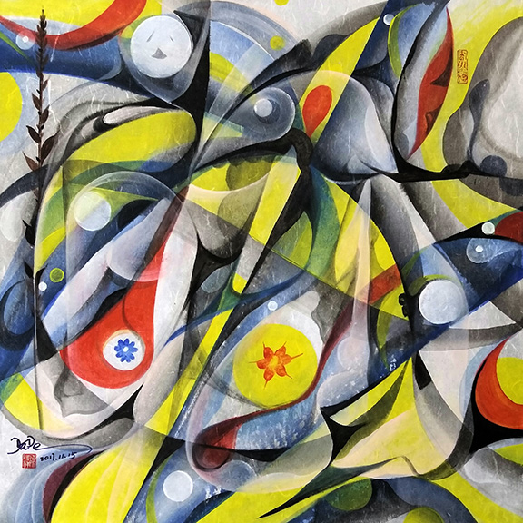 2017年10月,应北京艺林文化邀请范曾大师参加迎春书画作品展,有辛作品被推荐挂在范曾大师左边同展。具有现代激情奔放的抽象作品吸引了亚洲、欧美及世界华人藏家的[法眼]。作品多次入选国家级刊物、及国际国内报刊杂志网站推介。