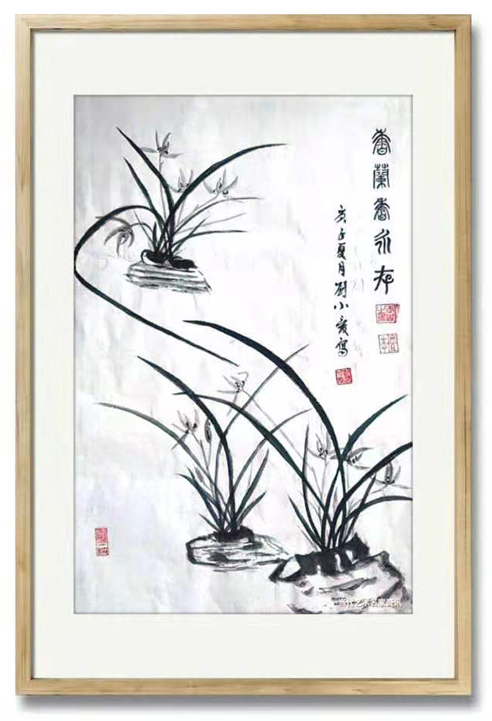 这也是董宝云伯父董寿平对她的要求,以及艺技的传承,言传身教,使刘小爱绘画成就倍增并传承发扬! 多年来刘小爱不断坚持写生,探索中主攻兰花,酷爱墨兰。认为四君子中的兰花坚韧,清心淡泊,不畏严寒酷署,风吹雨打生生不息! 实践中,在继承董寿平墨兰嫡系真传,及著名画家董宝云(董寿平侄女)的基础上,遵循师造化亦师古人的原则,博众家之長,取法石涛,郑板桥之法。用笔秀劲,潇洒妙趣横溢。 学习中,曾受到了著名画家王小选(董寿平弟子),王德龙,仝连跃等绘画界大家的亲自传授。