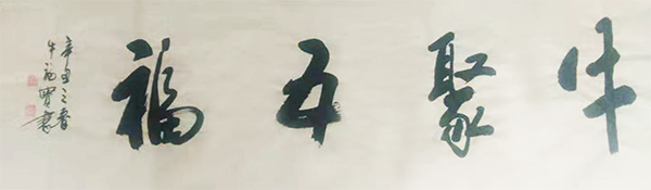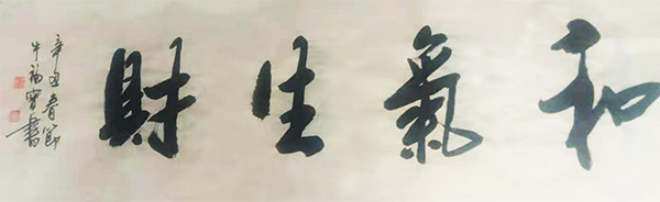牛老自幼酷爱书法,博览古今名帖,尤其对二王书法艺术进行过深入细致的临摹与研究。在“行”、“草”方面主要以晋代“二王”笔法为基础;在“楷书”方面主要以唐代颜真卿笔法为主,并兼学欧阳询笔法。牛老秉承传统而又不拘泥于传统,经过几十年潜心研习,将历代名家法帖的笔法融为一体,既有传统之韵,又有自己独特的艺术风格。其笔力遒劲、古朴厚重,字体结构严谨,深受收藏家和书法爱好者的喜爱。