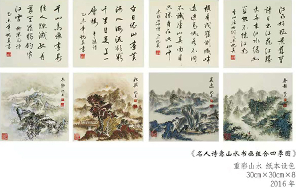 他的书画代表作:《忆江南》、《雁荡山览胜图》、《夏日山居图》、《江南雪》、《漫卷烟霞丽人行》、《春山如黛绿染衣》、《起看云涌时》、《始信人间有仙境》、《惟见丽人画中行》、《秋山秋水听秋声》、《万类霜天竞自由》、《山如金屏水如歌》、《江山览胜图》、《名人诗意山水书画组合四季图》《四季山水图》等现代山水画系列作品,是中国现代文人山水画的经典杰作!