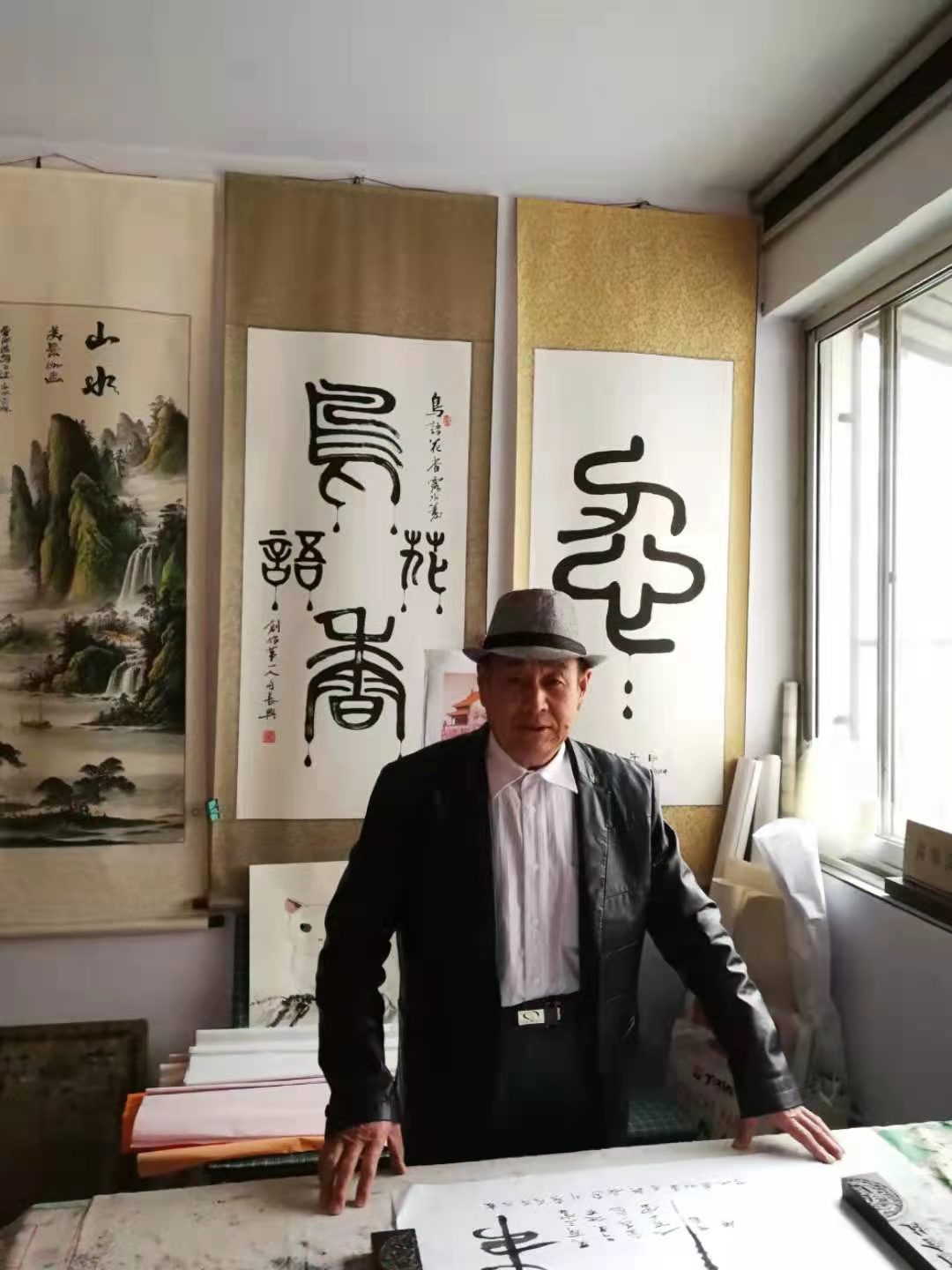 在近五十年的书画创意中,创作出篆书中独特的创意:“露水篆体”,深受同行们的赞赏,并得到国家著作权证书。