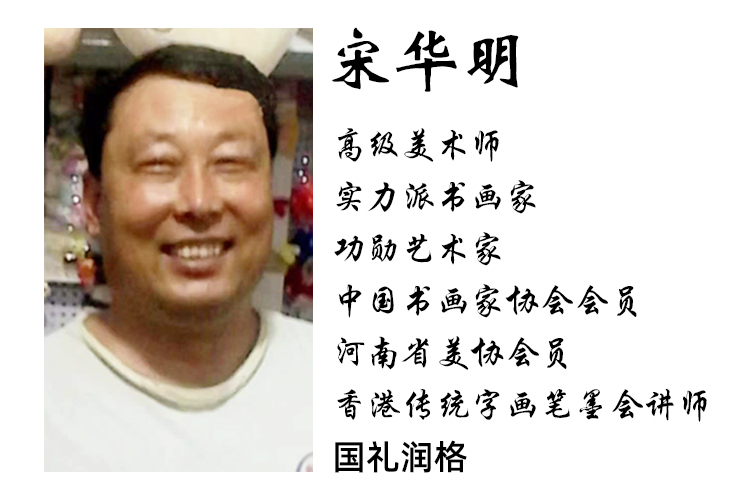 宋华明,男1963年生,河南洛阳人,从事美术行业40余年,现为职业画师。自幼酷爱书画,擅长国画、油画、毛笔、书法、墙绘、纸上现画,笔墨势境节奏情,起倒提按快慢转,喷发心中睿气,泄释胸怀逸情。