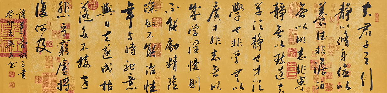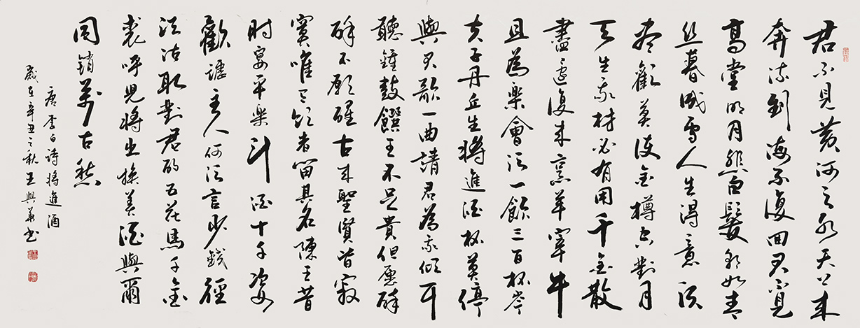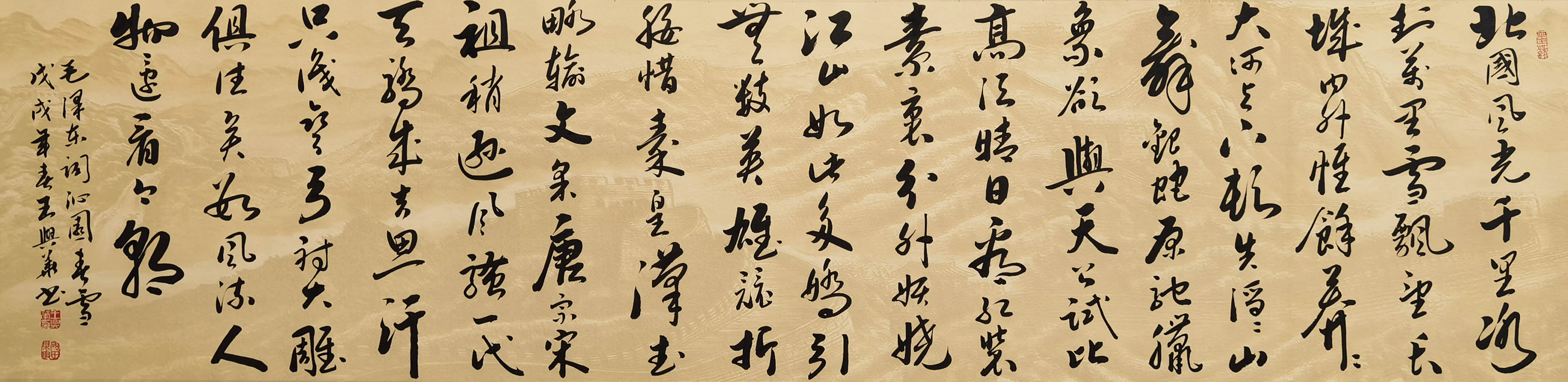 王兴华先生的书法长篇,有的说像春天风和日丽天那花草树木之美,有的说像在潺潺的溪水边那浣纱的美女之美,有的说有“清风出袖,明月入怀”之美,有的说有“飘若浮云,娇如游龙,波谲云诡,变化无穷”之美。书法抽象的特点,决定了一件书法作品,在人们欣赏中会有多向联想、多向想象、多种美的感受,给人以无限的空间;其深厚的传统功底,新颖的作品,深受国内外广大藏友和机构喜爱,被评为当今“最具收藏价值艺术家”。