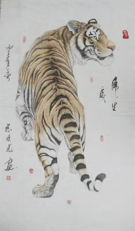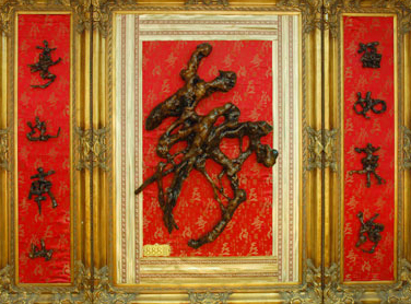 一百个佛字、一百个寿字、一百个虎字、一百个福字、用笔奇特,神态不一,是前无古人,自成一派,受到世人注目。