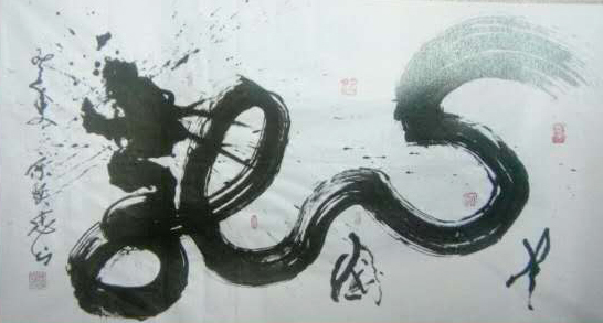 大公报及国内多空媒体称之国宝级根雕艺术品。是赠送达官显贵和成功人士绝佳礼品、是收藏家难得之物。适宜陈设在公司大堂,居家厅堂,是无价之宝。他擅长写大字; 2011 年琶洲会馆写长 20 米,宽 10 平方米的佛字; 2012年在中山市古镇纪念孙中山辛亥革命100周年活动中写长 20 米,宽 10 米 200 平方米龙字。他写的龙字,笔走龙蛇,气势如飞,在中央电视台、广州日报等国内几千家媒体报导和传播。他书写大字可称为神、奇、绝,用笔墨屹立了民族的胆魂,民族的骨气,民族的志气,民族的霸气,民族的傲气,民族的豪气。他为了弘扬是华民族的文化苦练了很多绝活;他可用逆向思维倒写逆书,用反向思维横写反书,可双手齐书。杯书、指书、拳书,用鼻“痴”书,闭目正书,反书,他用毕生精力来弘扬中华民族文化博大精深。显势中华人民族的智慧,勤劳、勇敢,顽强的毅力和能力。最近他又创作了一百个龙字