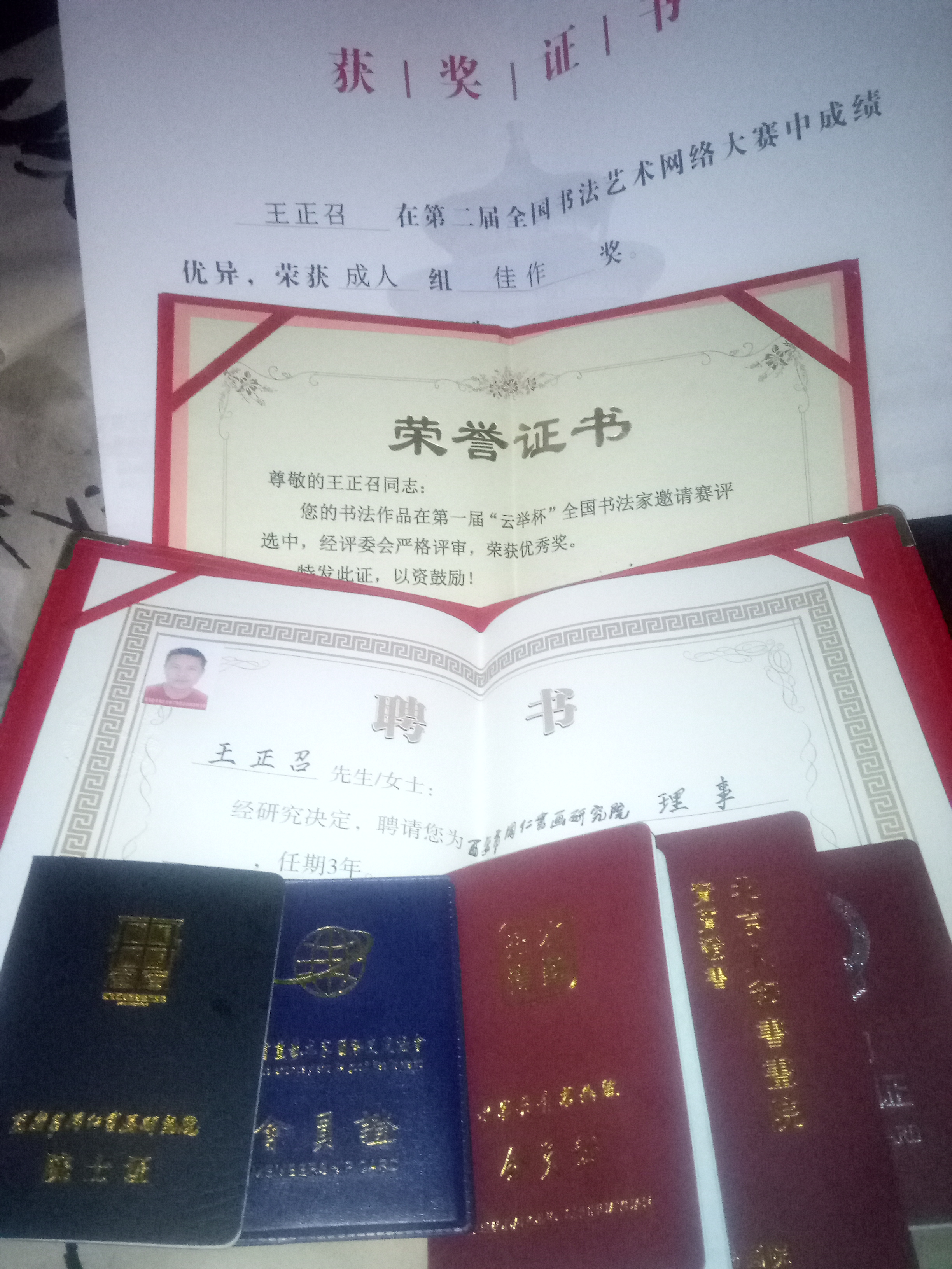 王正召自幼酷爱书法便从师学艺,先后学习临摹二王行书及颜欧柳赵,苏黄米蔡等古人书贴至今,更是对张旭,张芝草书及二王行书细心临摹,研究其精髓,学习其精华,从形似到神似再到今天的独具一格出古而不复古,经过二十多年刻苦练习及临摹,现以深厚的功力,娴熟的笔法,优美的字型深受专家和广大书友们的好评。