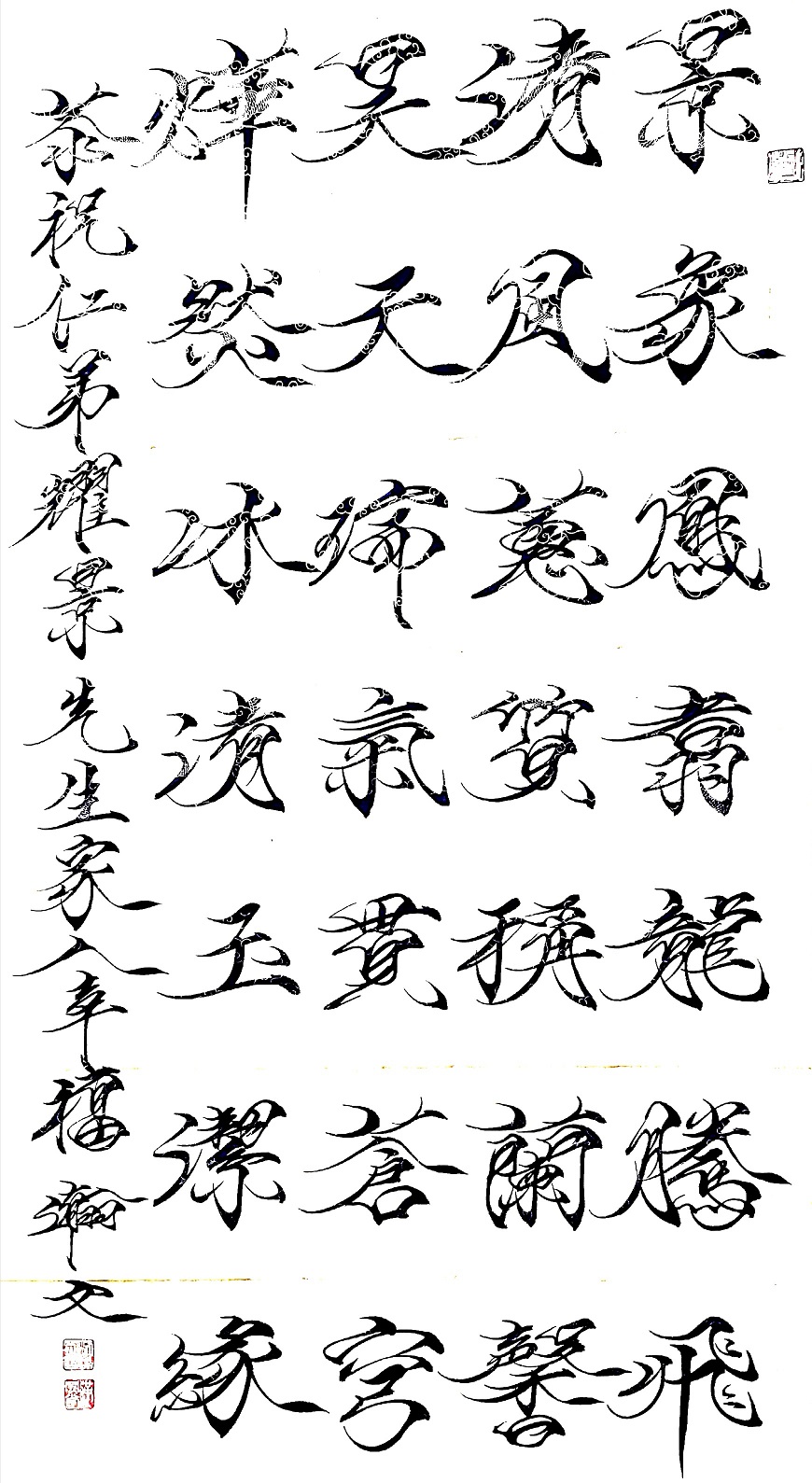 荣誉 兼任“国家APEC领导人服饰设计单位衣门雅集服饰”男装形象代言人、中国国风会文化艺术导师、2019年由北京工美出版社出版的“大匠之门~刘瀚文瘦金体书法艺术”面向全国各新华书店发行、“两会专刊~刘瀚文瘦金体书法艺术”、“中国文化报道~刘瀚文瘦金体书法艺术”、中国当代书画名家作品集等画册出版发行。