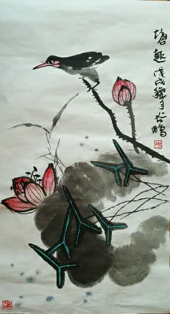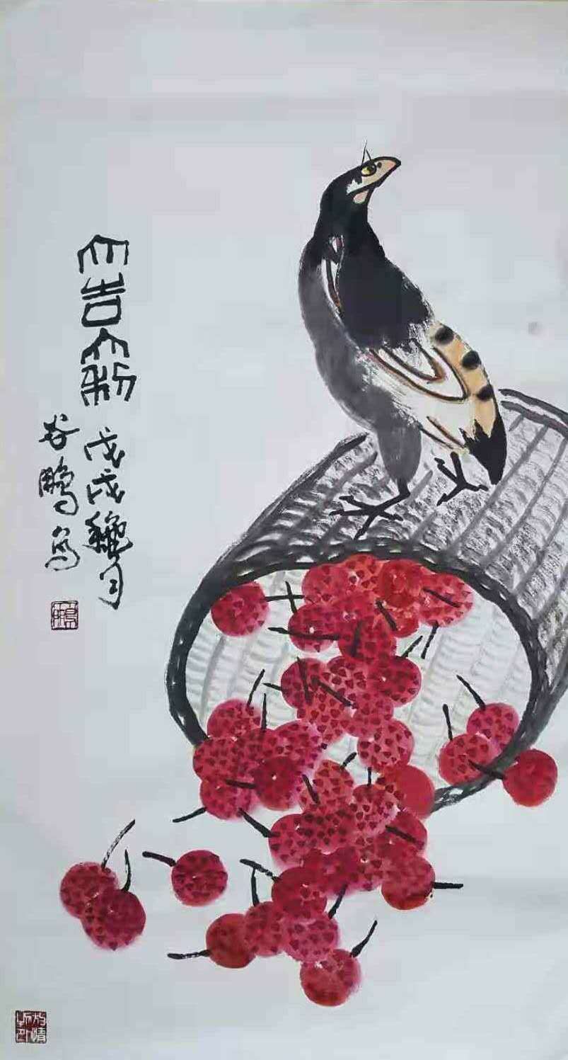 2015年跟随父亲谷宝玉被聘为中国海洋大学中国画教研室任花鸟画教师。经过六年的教学工作,又一次得到了提高和领悟。
