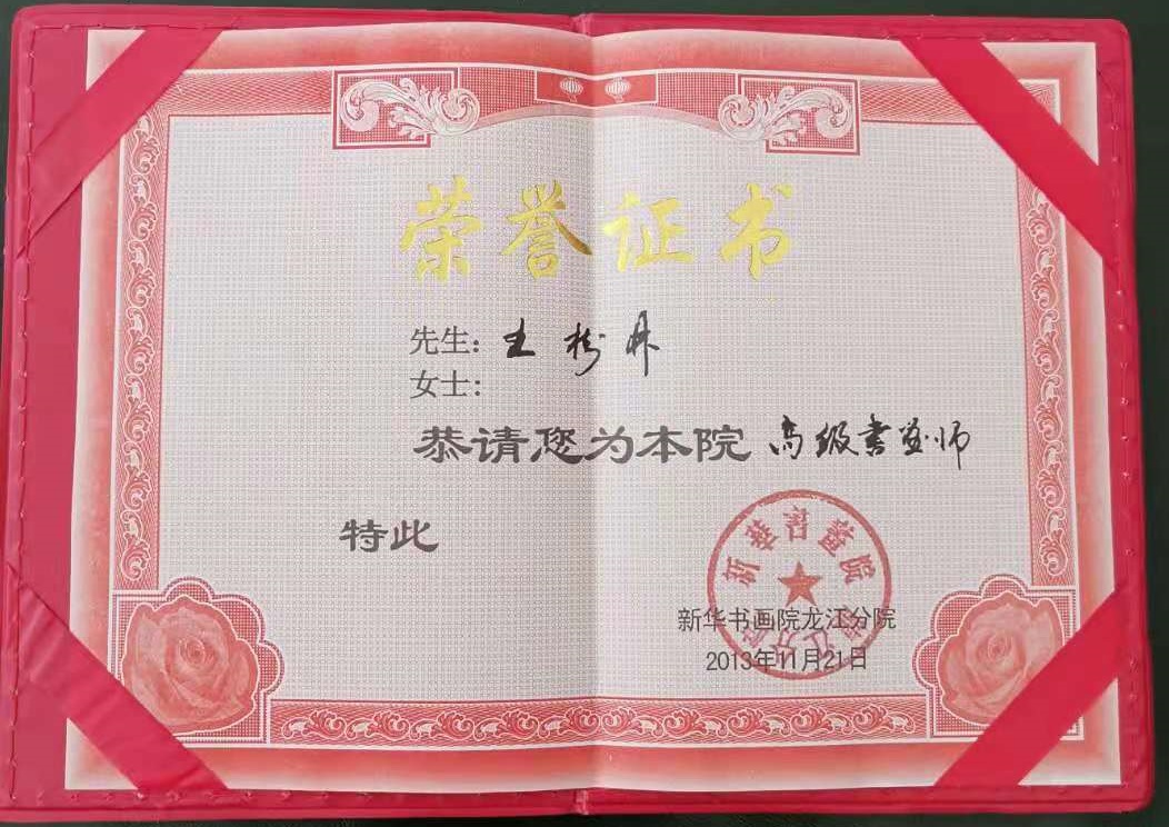 2009年,同江市老龄工作委员会主任。(二)墨痕心迹自幼研习柳公权、颜真卿的书法,邓散木的草书,由于酷爱中国著名书画家谢墨先生的书画作品,得到谢墨先生认可,后师从谢墨先生;对中国书法的各种体式进行了规范学习,通过长期的临池,对书法艺术有了较深的理会和书写能力。本人是中国新华书画院(新华社)龙江分院书法师,湖南省书法协会会员,新华社签约摄影师(记者),黑龙江省摄影家协会会员,黑龙江省新闻学会会员,黑龙江省艺术摄影家协会会员,《黑龙江日报》特约记者,北京《市场信息报》特约记者。摄影、书法作品曾获国省一、二、三等奖,曾受到国家领导人称赞。书法作品、摄影作品刊登于国内外刊物、报纸,受到党和国家领导人的接见,与中国作家党组书记玛拉沁夫,书法家付继英及全国政协委员文艺界名流在一起交流,作品得到赞许,受到接见的党和国家领导人有:乔石:全国人大委员长:费孝通:全国人大副委员长:司马义•艾买提(副委员会长):全国人大委员长:吴官正:中纪委书记:尉健行:中纪委书记:李铁映:全国人大幅委员会长;钱运禄:全国政协副主席;张思卿:全国政协副主席:书法作品曾被美国,俄罗斯,香港,澳大利亚,台湾等地的友人收藏。部分作品被刊登在《海峡两岸》上《中国民主与法制网》《黑龙江经济网》《中国书法报》《佳木斯日报》等新闻单位都有发表。