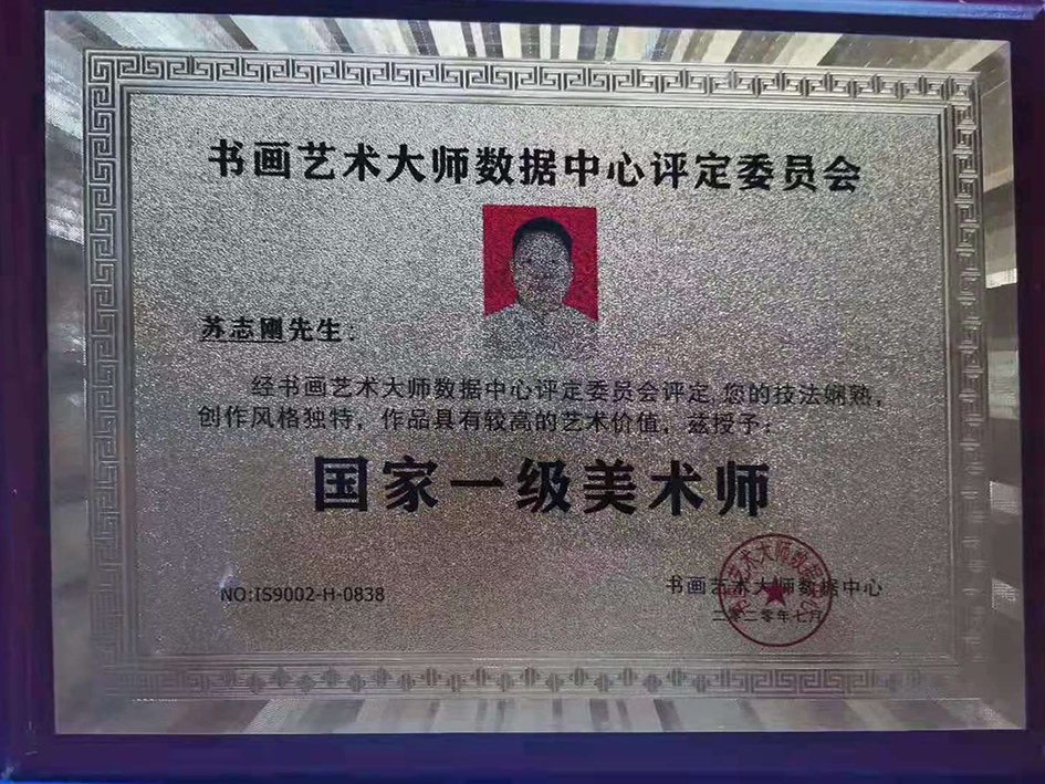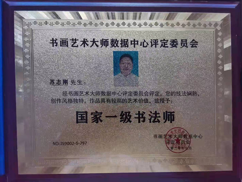 苏志刚老师作品多次在中国各大美术馆,国家大剧院,等地参展。并获得多次奖项。很多作品还被纪念馆,文化博物馆收藏。五千年华夏文明源远流长,960万平方公里,中华文化历史千载是文字将他传承至今。经过数十年的艺术探索,苏志刚形成了独特的简繁风格,笔墨竿练利索,铿锵有力是最具有实力派书画家,其作品曾获得韩国收藏证书,多副作品被国家博物馆收藏。