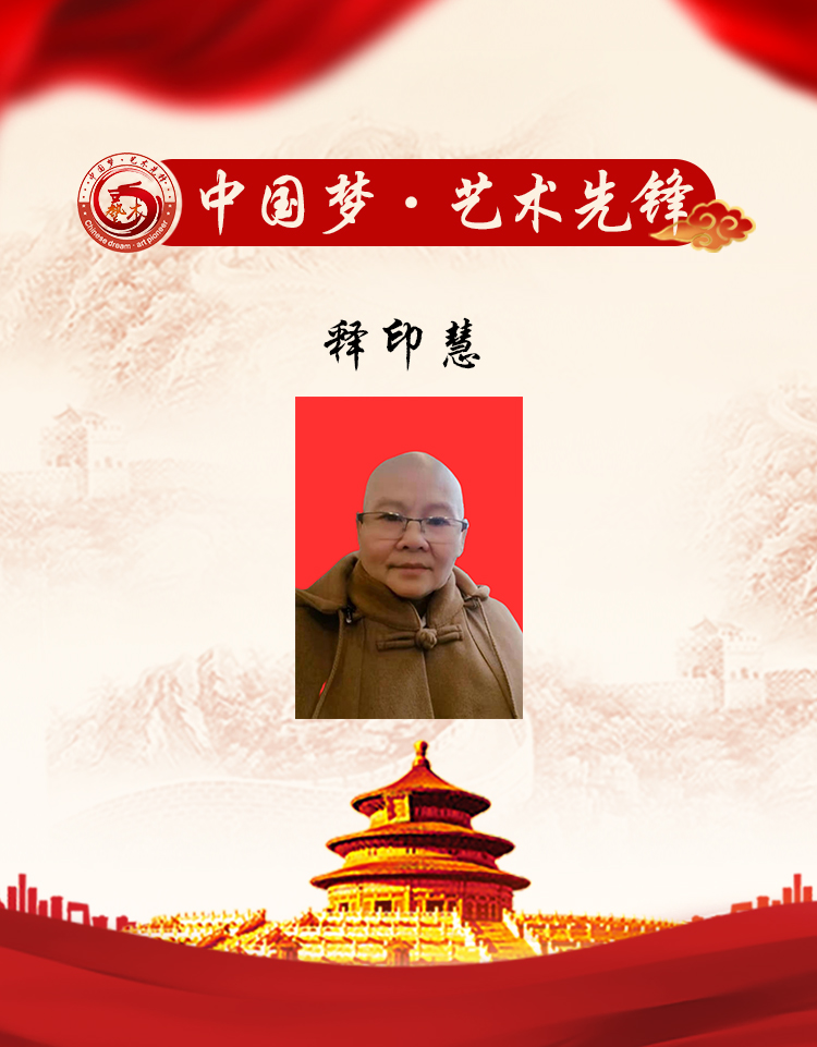 释印慧法师香港居民,出生于书香门弟,宋美龄秘书上道下愿老法师皈依弟子,沩仰宗上道下明老和尚法子,九华山受具足戒等诸位高僧大德所器重得力门徒,于茂名信宜市水口镇双山关帝庙住持师。传承书画人物,最具匠心艺术家,当代最具收藏价值艺术家,中国实力派艺术家,2021年8月荣获“中国梦·艺术先锋”荣誉称号。