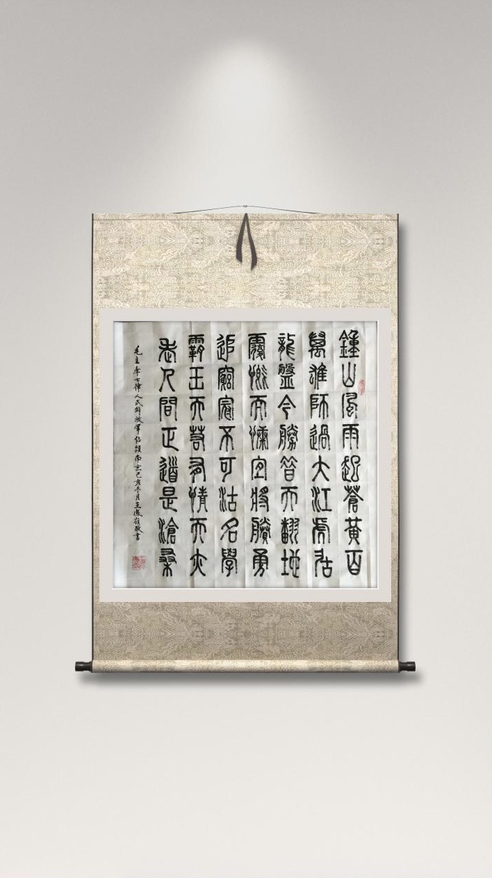 自幼以名帖为师,50多年来潜心研习中国书法篆、楷、隶、行书之精髓,从诸帖中吸取营养,习书不缀。近年来主要研习篆书,兼修楷、隶、行书,并寻求新的表现手法。