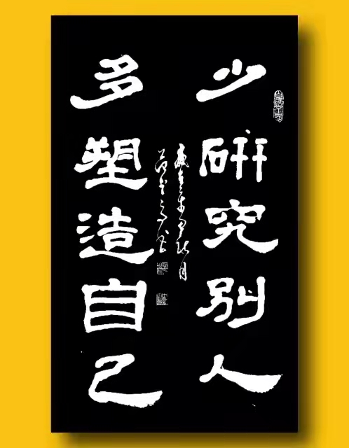 先生作书,五体皆善,其自身的书法造诣不仅夯实了传统的书法根基,更是能在此基础上汲取前人古韵,继而师古不泥,循古不拘!纵观先生书法,其作品可谓是集艺术、思想、审美、古韵为一体,字字格调既高雅,亦自如。而先生本人更是一位品性坚韧,心境淡泊的书法家,所以无论是其本人还是其作品,都完全可堪艺界之榜!