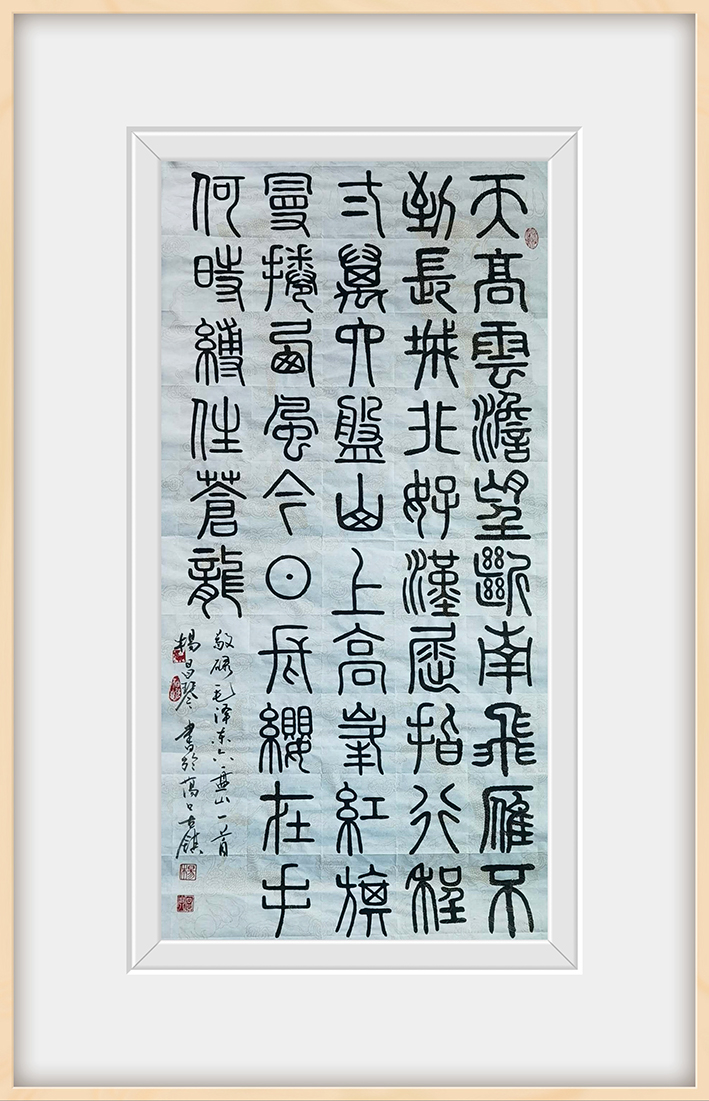 习书作墨,必须要经受学养的熏陶,一个人若是没得有深厚的文化修养和境界,那么他所作出的书法作品也就难堪高臻!而杨昌琴女士的众幅书法作品,则正是根基于个人的文化修为,她的学养不仅为作品孕育了极高的文化品境,更是为书坛呈现了一股柔和的书卷气息!作为书坛中少有的女性篆书名家,杨昌琴女士的篆书自然是深具功底,其作中笔法不急不滞,力遒沉稳,笔线亦是缓转多姿,时而显峻健古朴,时而温润凝和,而整个的篆书章法更可谓是开张自然,浑穆大气!观之如临古碑古意,书香之气扑面而来!