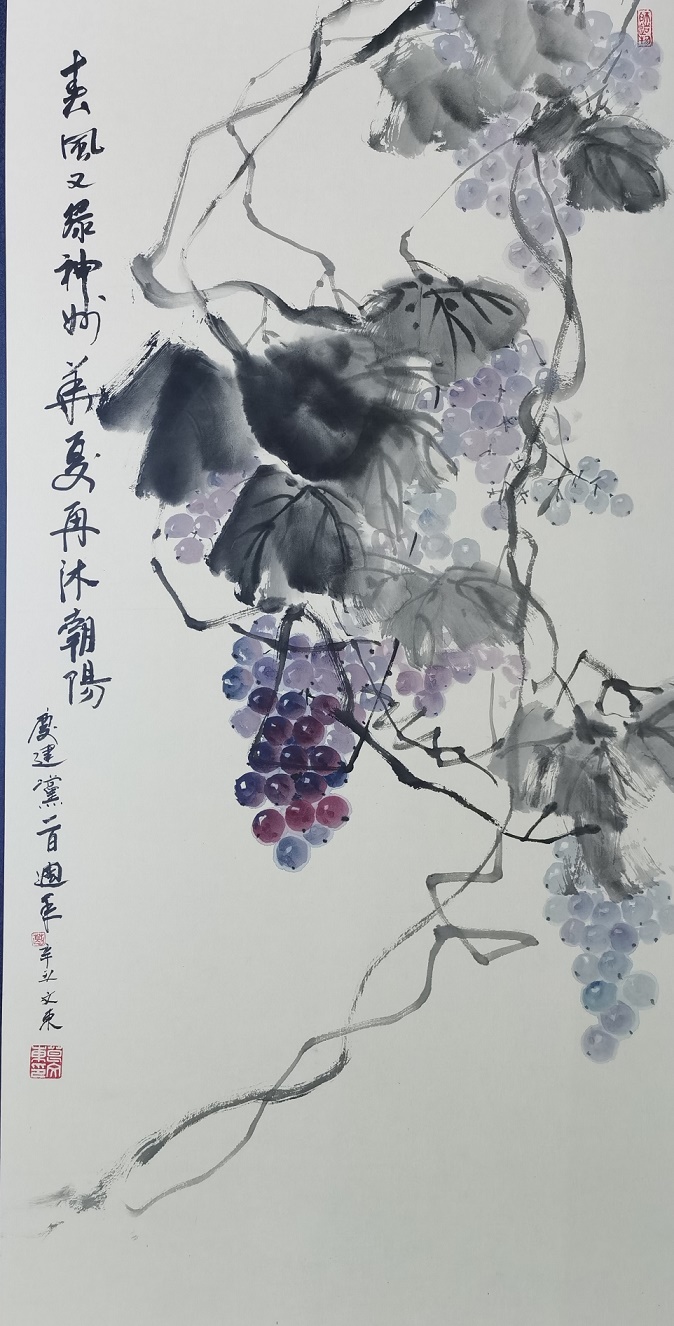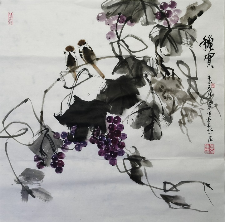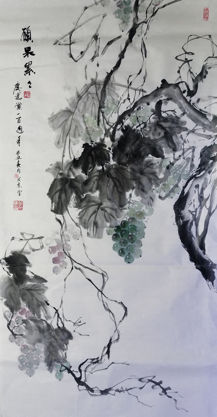 在创作题材上,先生善于写意花鸟、紫葡、荷花等题材,所绘作品皆是墨色丰润,形意脱俗,传统法度的根底韵味可堪浓厚!超逸的笔墨气息,正是先生作画的奥妙之处,在画中他总是能以灵情运笔,以文气运墨,而笔与墨的意趣之妙,也是在先生的手中得到了完美的融合!尤其是在荷花题材中,先生不仅极其重视形意上的感觉,在笔墨他也是十分讲究视觉上的变化,画中那黑与白的对比,淡与浓的对比,皆是有法可循,有根可依!而在画面的整体结构上,其作品亦是与常规有所不同,这是因为葛文东先生在作图时,是敢于营构自我风格,画中的荷花以高昂恣意之势占据主态,似不经意,又似极意!而荷叶则是一反平常的俗笔制衡感,垂叶散骨,点染低调,以此尽衬荷花之佳姿,大意阔境,视感卓绝!