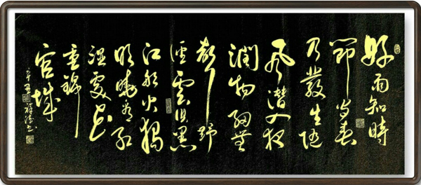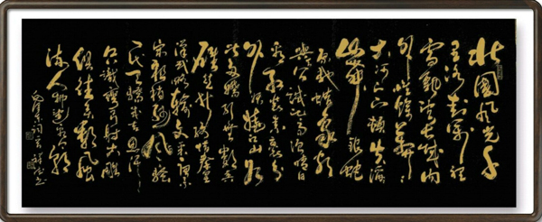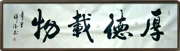 笔里有墨,墨里有笔!笔墨代称书法,义祥德笔法精湛,同样把墨法也历练得遂心应手。大笔饱墨,无有结滞,一气呵成,从饱满圆厚写到古瘦淋漓,可见飘风骤雨惊竦竦,终成落花飞雪何茫茫。导之则如泉注,顿之则如山安!通过笔与墨的双重铺陈,让他的书法充满了类万物之象的情景感。字字生动,整篇华仪,所成作品必是形神兼备、尤贵于神。当代书坛,倾心研究笔法者多,兼顾用墨者少,所以义祥德笔墨双佳的书法造诣实属稀有鲜见的书法奇绝!