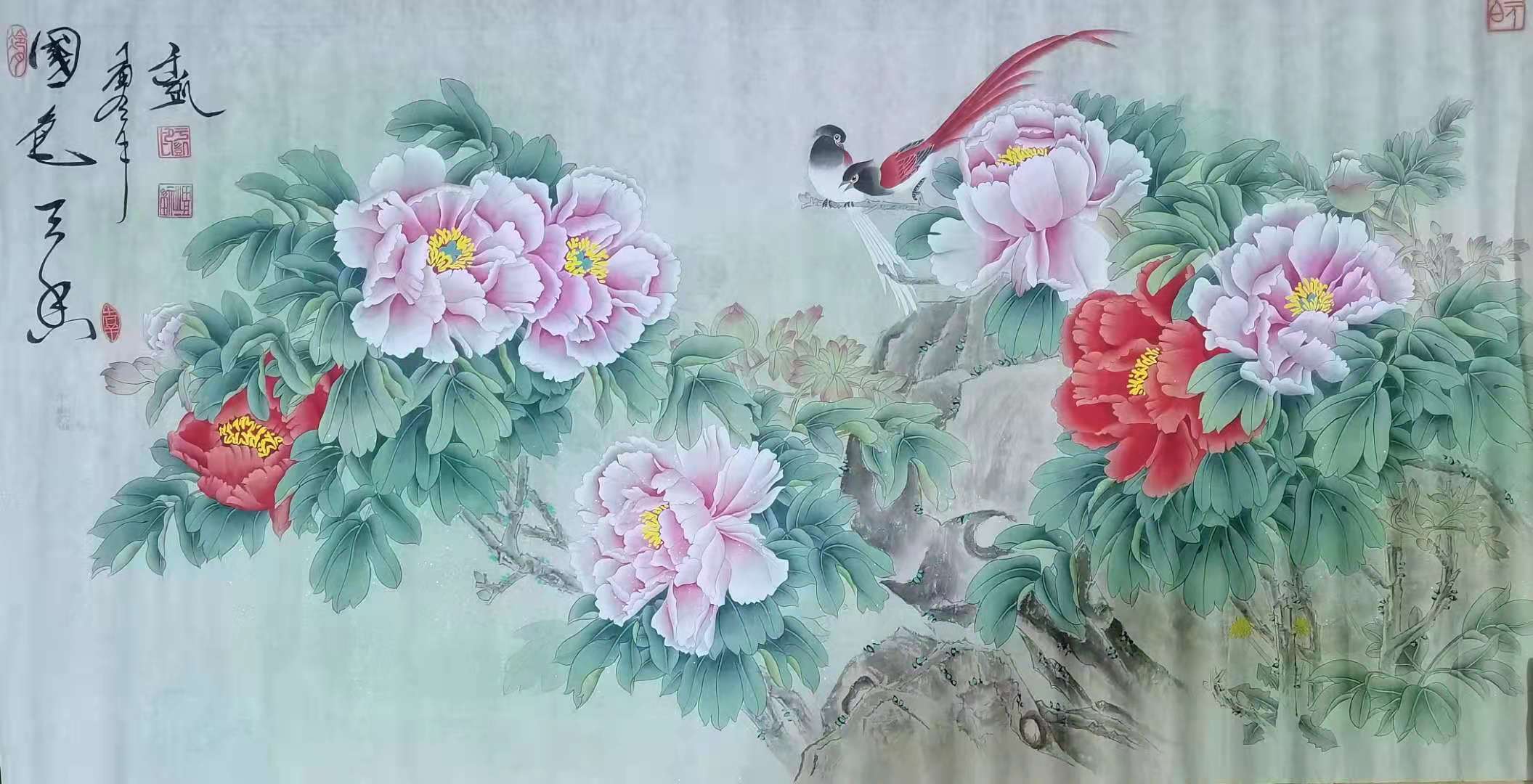 传统中国画法在他的花鸟、老虎、山水、人物作品中都有精益求精的表现力。其工笔之功取法大宋,宫廷画法传承正宗,把源于宋、兴于宋的工笔写实功夫历练的炉火纯青,让世人可以一睹大宋宫庭画风的精益求精。时下论画,皆知宋代写生是谓巅峰,但是纸寿千年,经过岁月剥蚀,已经很难从流传下来的画作中,真实观鉴到惟妙惟肖的工笔超写实风貌,这实属是工笔品鉴的遗憾!