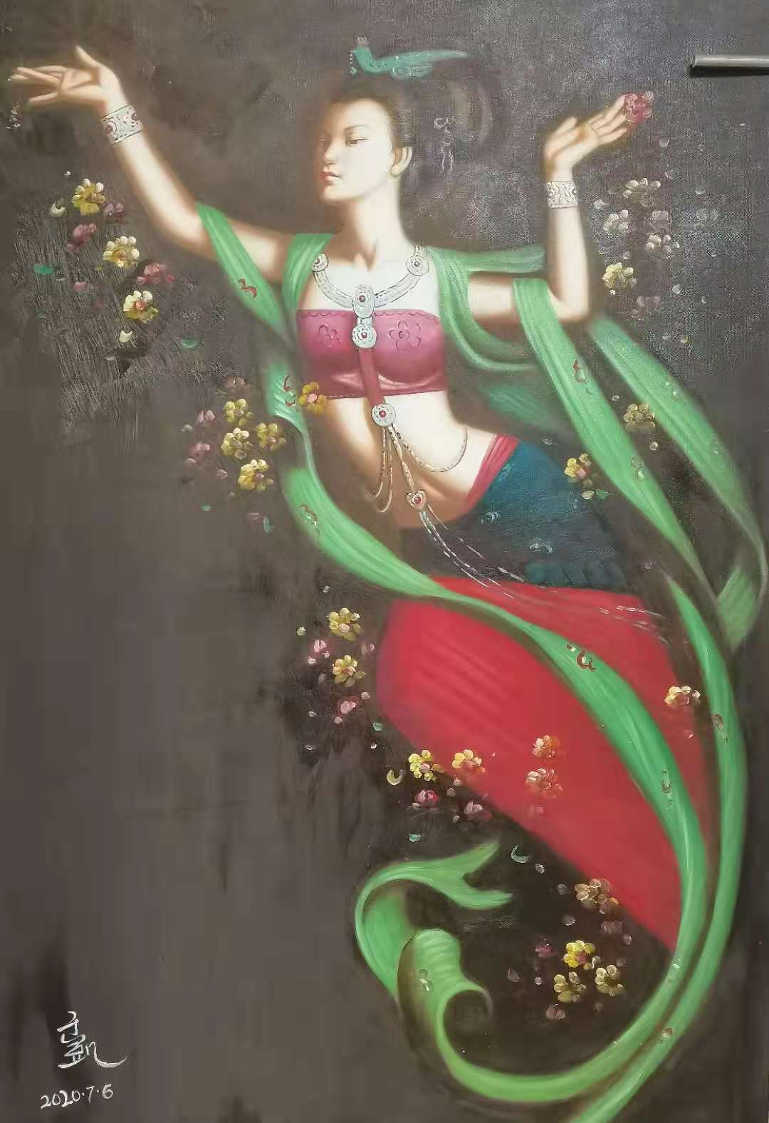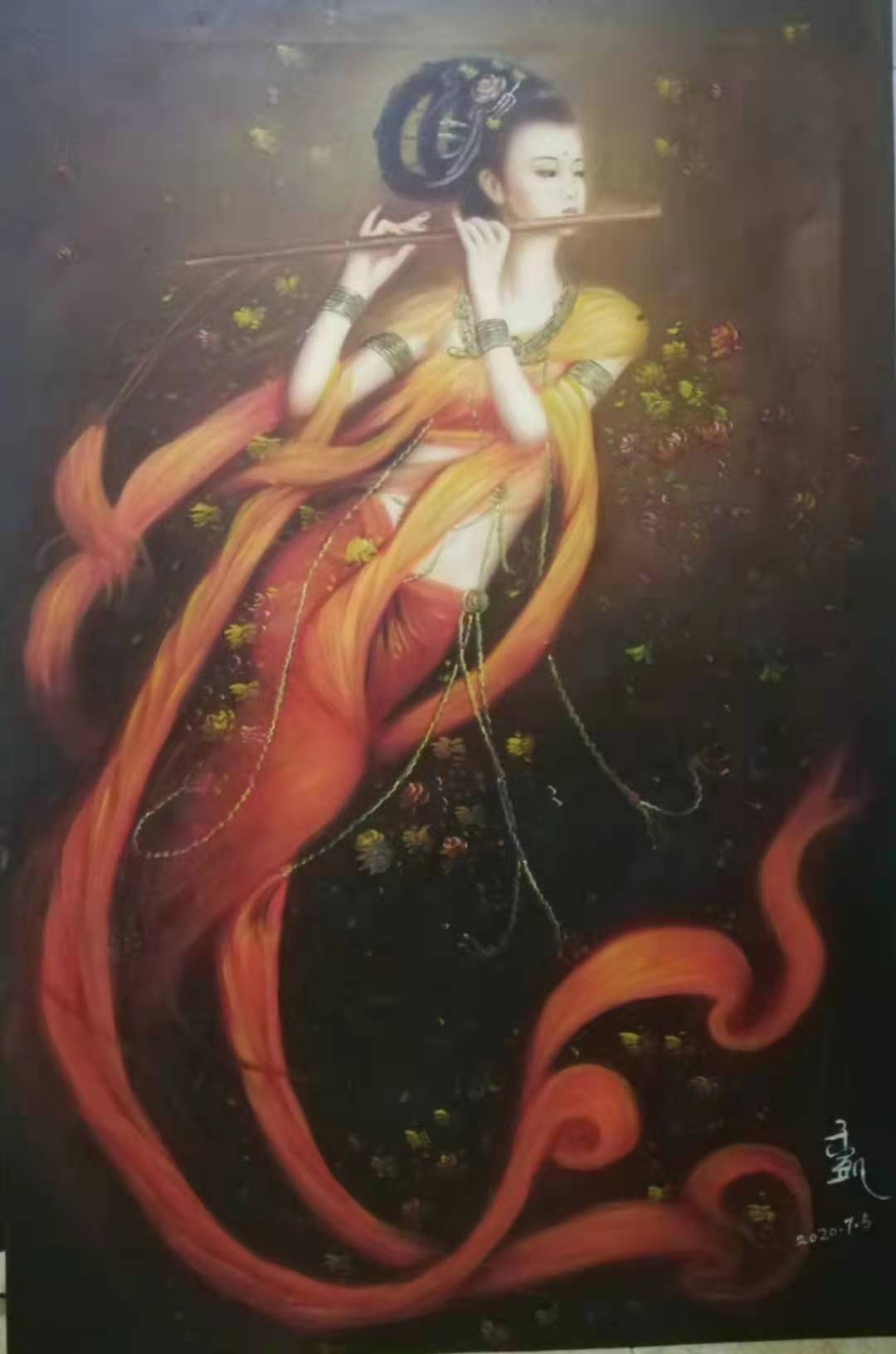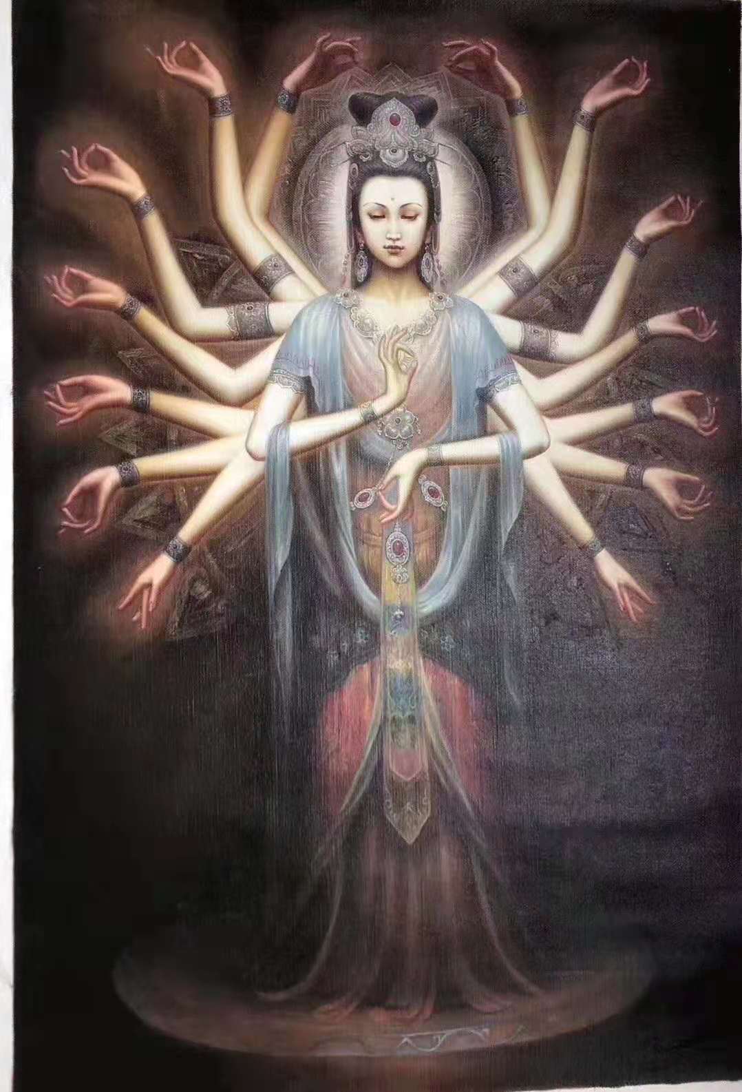 于承右画画,有相当扎实的传统技法历练,但是他的画又不是仅作古风的狭隘,带着笔墨当随时代的创新动力,展开了工笔人物创作的时代画卷!画美人既见古典美,也有时尚风,借古开今绘美人,点睛而语极气韵!用一句话来形容,既是他把美人画到了“美的不像话”的地步!无论是沉鱼落雁,还是闭月羞花,抑或是画佛画仙,画禅画道,都不是沉旧的套路凡式,而是心作新成的尘外孤标!由是,观赏他的画可以统摄身心,最有可品可读的精气神!