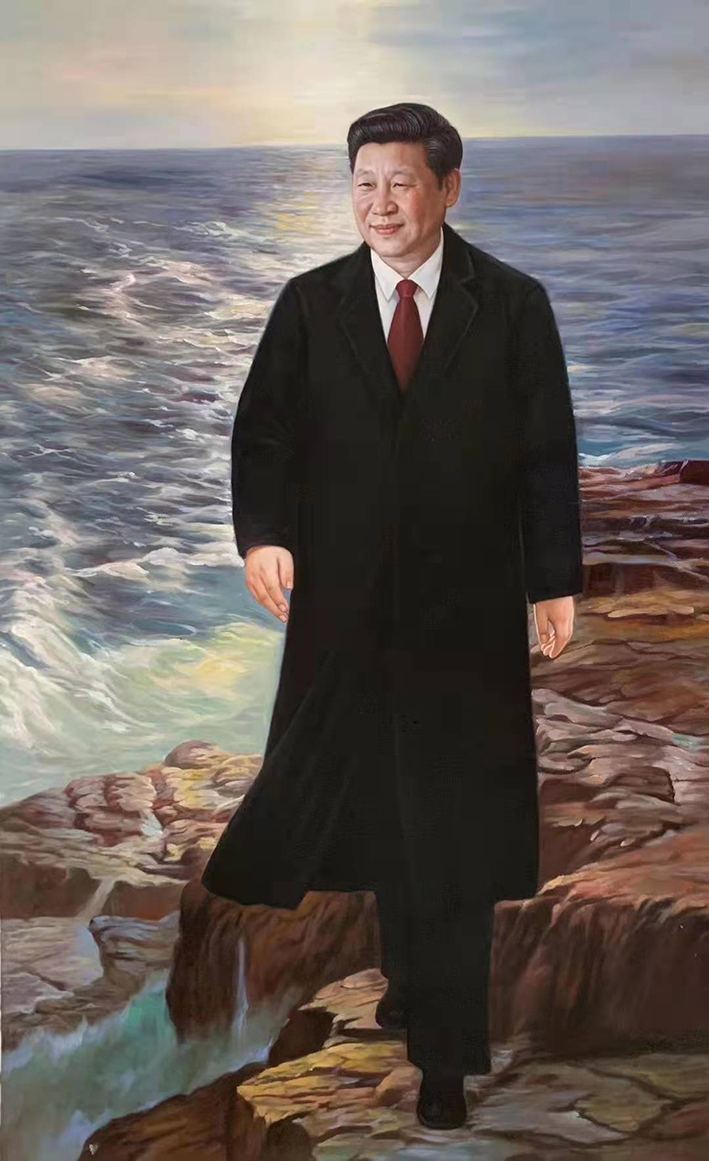 精研画道,惟妙惟肖。为领袖作肖象,他可以把仰望画成崇敬心,还可以为功绩画出丰碑意,更重要的是他的领袖肖像作品有接地气的亲和力,在纤尘不落的塑造里,不乏巍巍正气,也最有和和魅力。现代主义的表达策略,让于承右的肖像作品可以标证历史功勋,也可以抒发“心在一起”的精神魅力,当然可以引发周公吐哺,万众仰望!