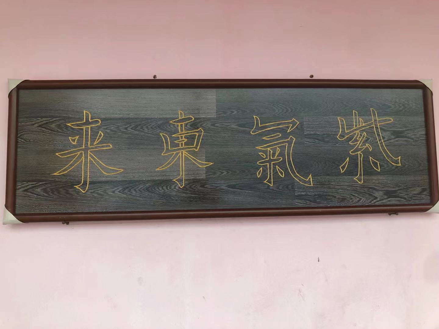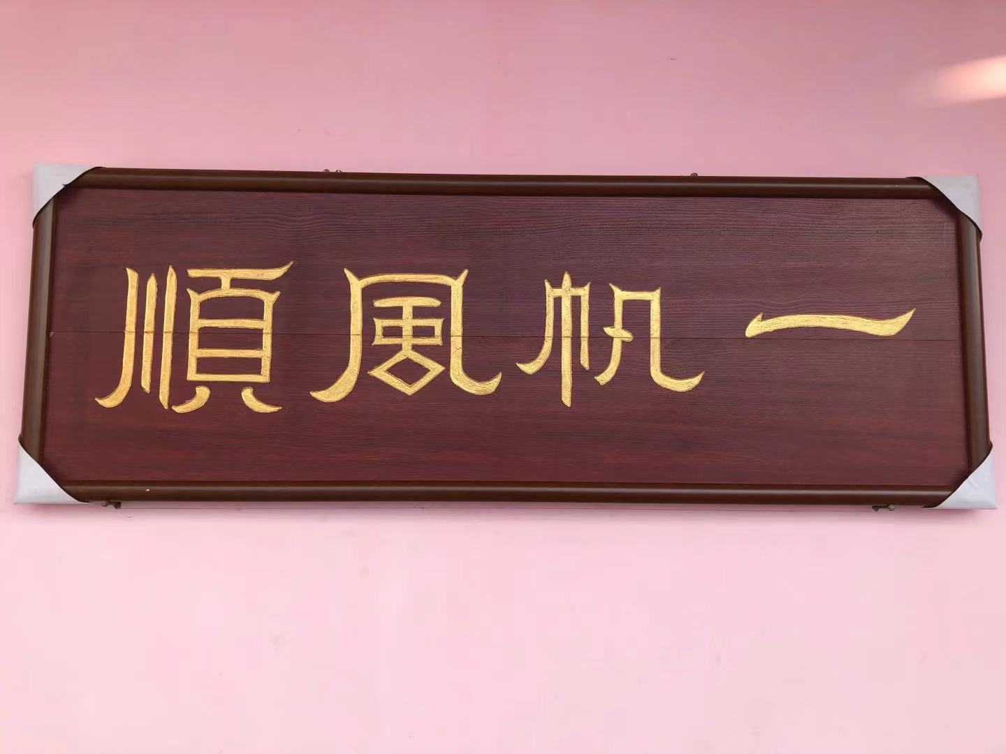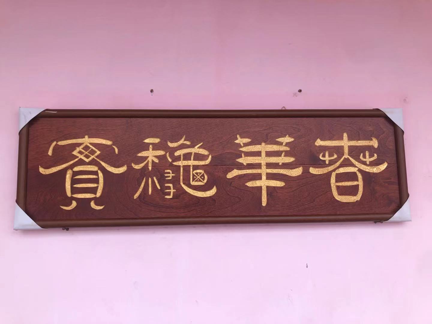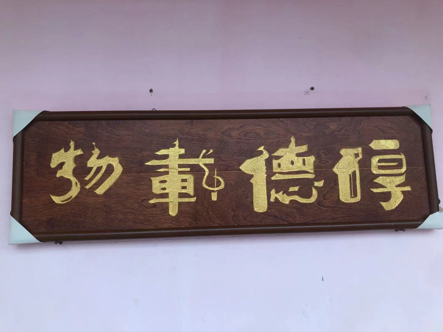 说到其书法正大气象的形神表达,印证在他的木刻涂金匾额里,可以发现最是一目了然的真实不虚!人们对匾额艺术品的欣赏,现在有两个来源,一是可以从古装影视当中看得到背景里的书法金匾,二是在文化古迹旅游过程中可见金匾。这两种欣赏机缘,都带有偶然性,并不能饱就人们的观赏期望,所以匾额文化从整体上来看,因为观赏受众与实际作品存在着时空隔阂,处于寂寞甚至没落状况。幸有书法大家、刻匾巨匠郎新平先生拥有规制木匾的超能力,可以无限地拉近匾额文化与大众审美的距离,让人们可以在全时空、全时段、近距离、全方位地体验匾额文化的源远流长,从而生发出叹为观止的审美享受!从这个意义上来说,郎新平先生之所为、之所作都是文化弘扬的非凡资粮!