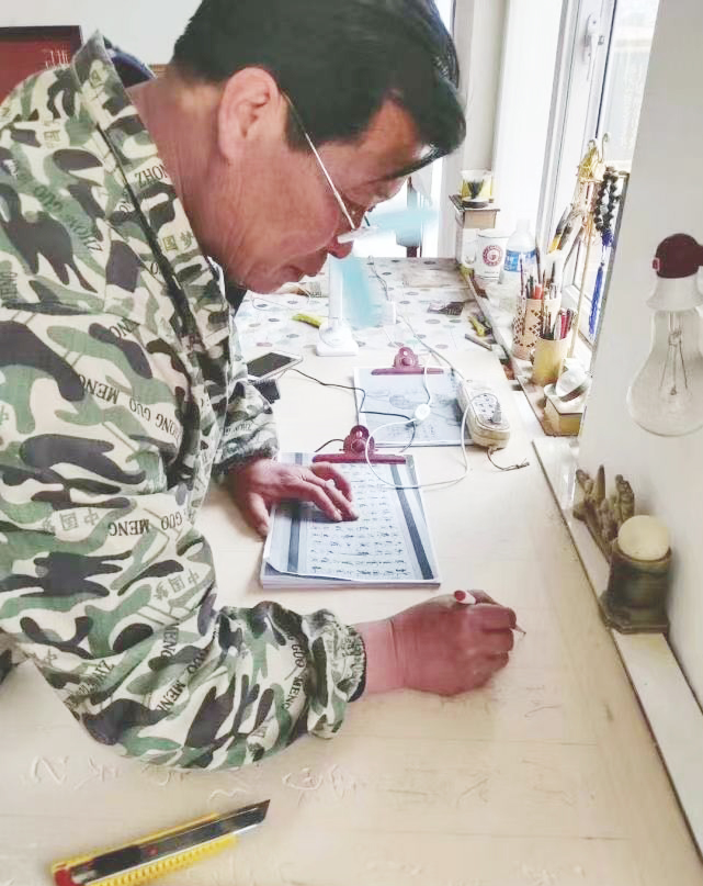 书法家郎新平有历经磨砺的人生经历,他过着草根式的生活,却有着弘扬书法文化的卓越功勋!最有“入木三分”作匾刻的超能。书法已经是炉火纯青的境界,刻工又有遂心应手的洒脱,他用自己历练数十载的艺术才华,作窠擘榜刻,件件都是国粹品质!迎面遇金匾,贤家书、巨匠刻,匾额技法在传承与创新加持下,正是文化龙脉可以古今相续的动力!