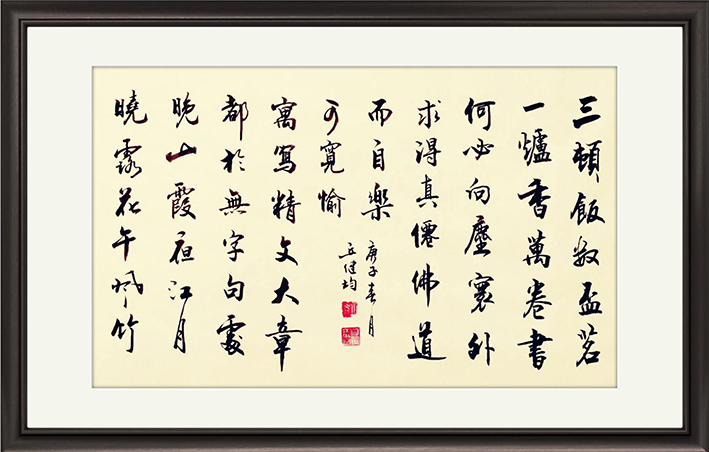 从先生的众幅书法作品中,我们不仅能感受到一股传承了千年的翰墨美韵,更是能看到他和俗笔书法家的不同之处!纵观先生行书,其作中笔法将气势,更将恣意,笔笔线条具温润而不失劲秀,具清逸而不失法度,究其原因,正是因为先生那深厚的古学功底和文学气脉!在墨法上,先生亦是存于性情,通幅墨法有浓有淡,有润有枯,是谓参之以变化,而呈之于表象!此诚真可叹形意自然,法门正宗也!