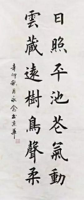他带着深师碑帖的信念,深研书法的正宗机密!数十年临碑帖不遗余力,把隐藏在名碑法则中的书道秘籍一一解锁成功,写得一手金书锦字!楷书之功夫相当令人折服,欧楷一体历练得炉火纯青,遂心应手!有奇笔险墨,可以在正大气象的平整结构中,写出楷书的高低有趣!绝不作状如算子的印刷体,避免把楷书写得上下齐平、左右方整,而是善作空间播布,字内字外穿插洒脱,把楷书写得平曲有别,左顾右盼。侧笔显饱满,努笔有曲势,急去缓回勒笔成,快利飞动啄笔生。八法之功游刃有余,楷法无欺真实不虚!