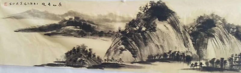 善作书法的刘永念先生,创作文人画也是举重若轻,毫无滞碍。用相当到位的笔墨功夫渲染西峰峥嵘喷流泉相当有诗意,塑造东崖复沓蔽轻雾相当有词韵!在色不碍墨,墨不碍色的层层铺陈中,画出的山水纤尘不染,可以明心见性。在这样的山水里有澄怀观道的哲学印象,也有独坐临流与天地精神往来的深刻。一波清水绕村流,征帆不动亦不旋!在空悠的空间里,作一河两岸的情景,秋风待渡,禅意丰富。仰观其山水,尽得一片清凉,正是明公绎思挥彩笔,驱山走海置眼前的成就!