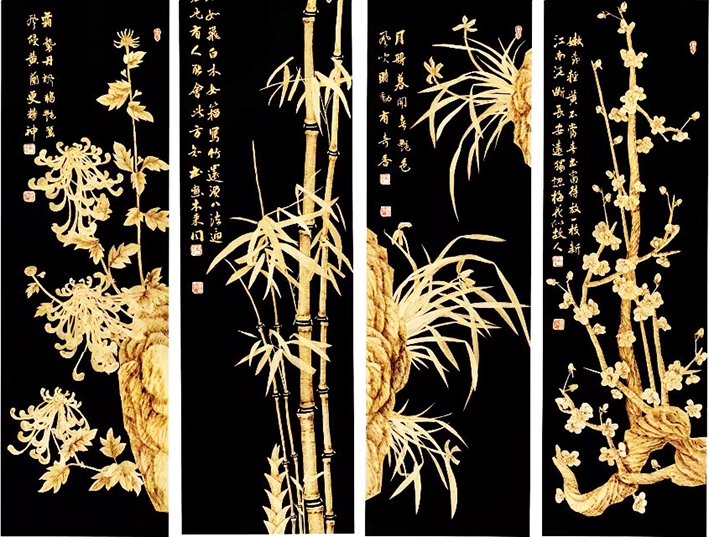 7、创作700余幅作品,部分已被多国博物馆和友人收藏;部分被选定为中华国礼;《梅兰竹菊四屏》荣获中国文联第八届民博会银奖。书画作品被第24届中国金鸡百花电影节执委会授权为指定礼品和纪念品。21幅书画作品和本人肖像被中国、美国、英国、法国、荷兰邮政选入建国七十周年纪念邮票和集邮品出版全世界发行。本人艺术简历和代表作品被国务院编入《中华艺术大典》。