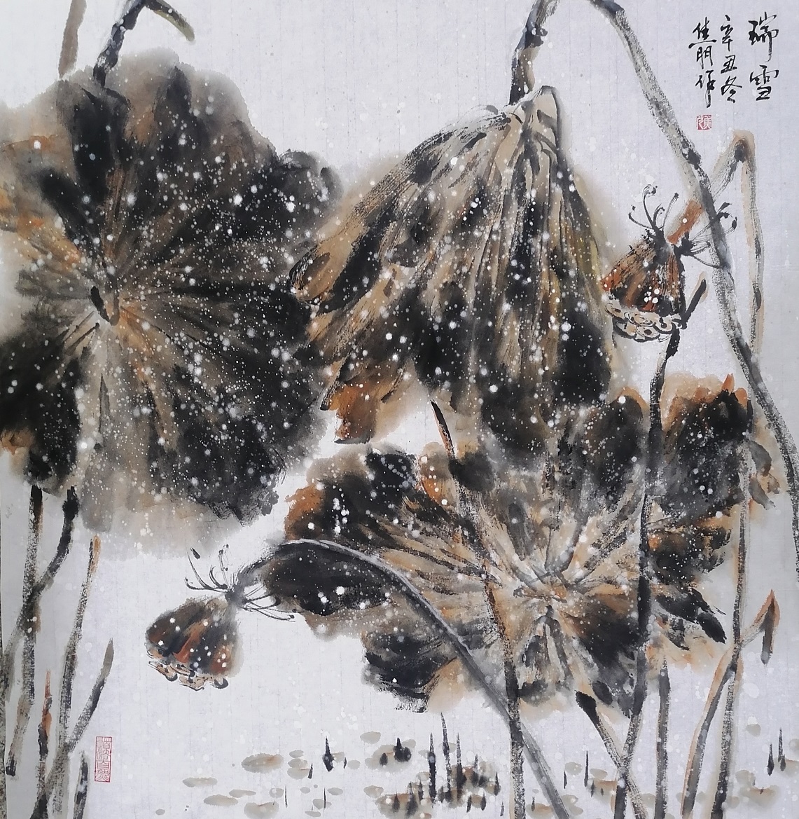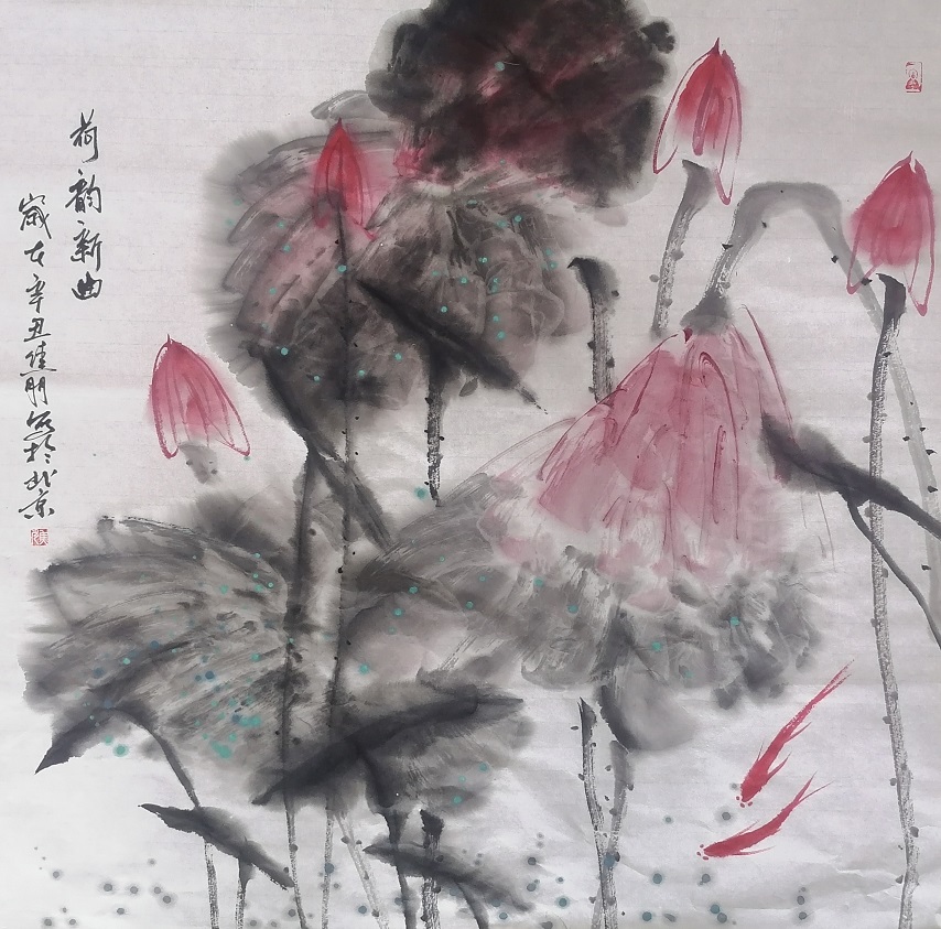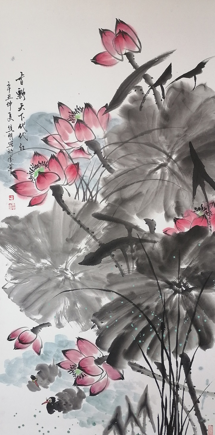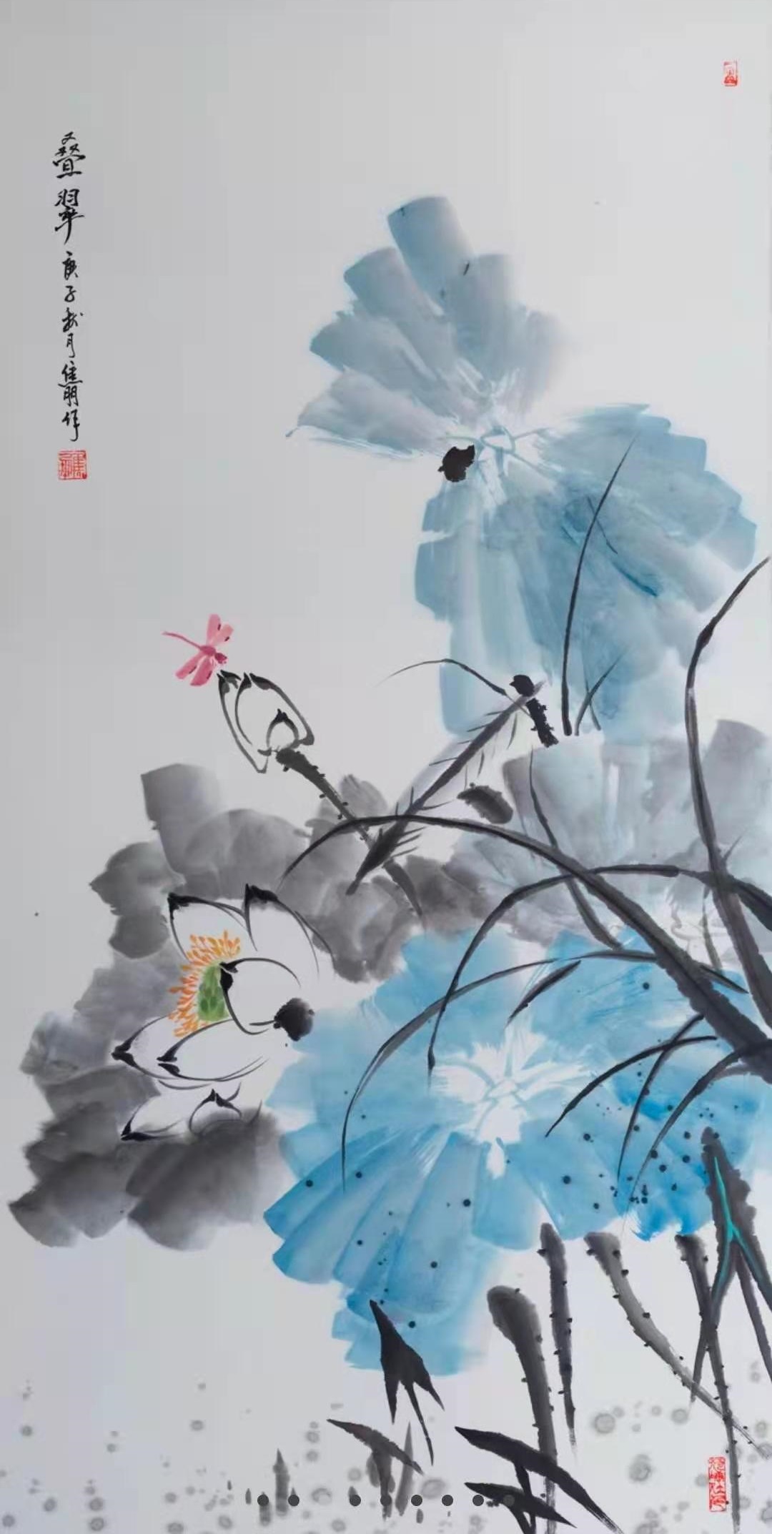 近年来,悉心研究中国写意画法,尤擅荷花,在承传前辈大师们的技法的同时,又努力创造出有自己风格的高雅作品。