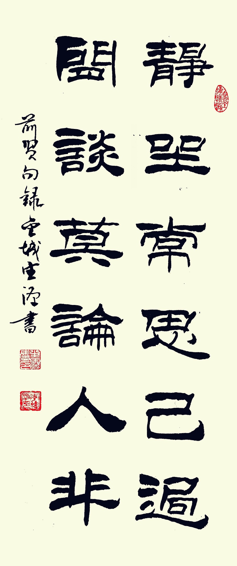 取法为上,书道正大。在他的隶书作品里,可以明显感念到正大气象!淡泊以明志,行稳以致远,李德波先生把书法习成当成人生的一场修行,追求书如其人的高度,终成德艺双馨的贤家。居乡野不忘担当,筑杏坛善传书道,义务教学,唯求文化怡万家。乡贤美德,镜映翰墨!