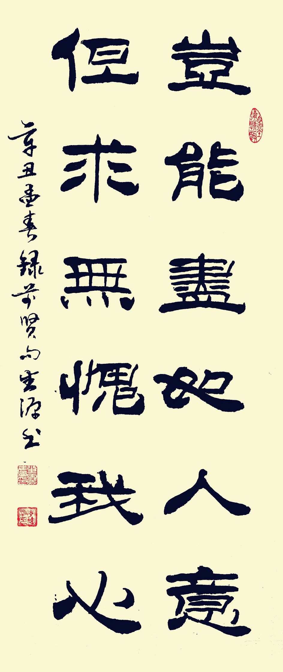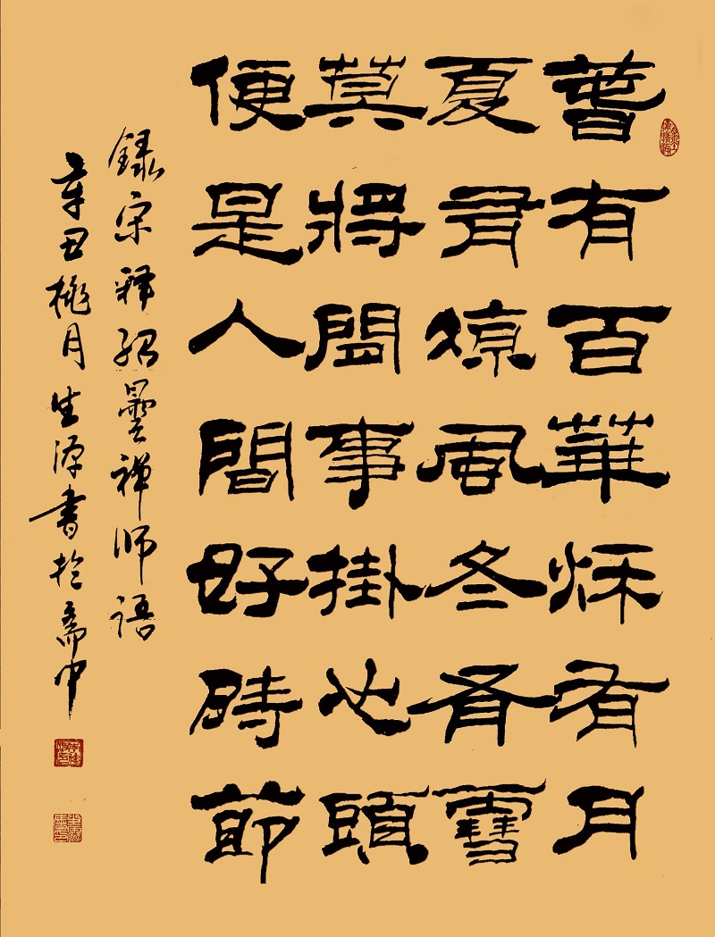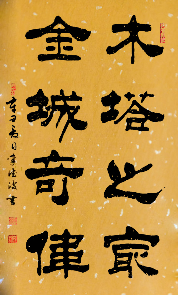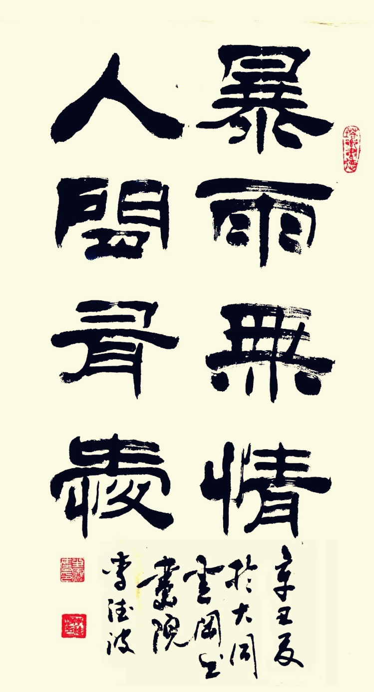 反观李德波先生的隶书作品,一眼望去绝对有汉隶十碑的功夫,法度严谨,可书金质。又有自立面目的洒脱,习法不拘于法,执笔在手,运笔在心,可以把心迹映入笔迹,让隶书带有依书抒情的个性美。读来让人感觉与众不同,自有风范!从这个意义上来说,李德波的隶书用“法度”与“创新”走出了开拓书道文化的正确路径,是书法文化龙脉的维护专家!这也难怪他的书法创作与书法研究在书坛大著其名,富有影响力,称谓“奇人”实属雄才加持,名副其实!