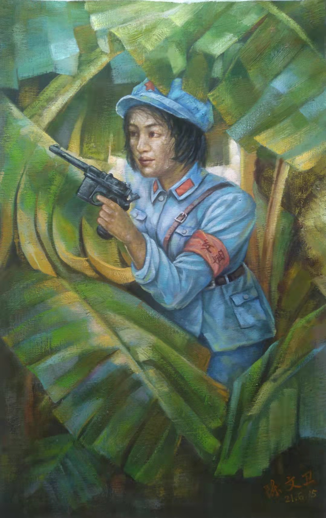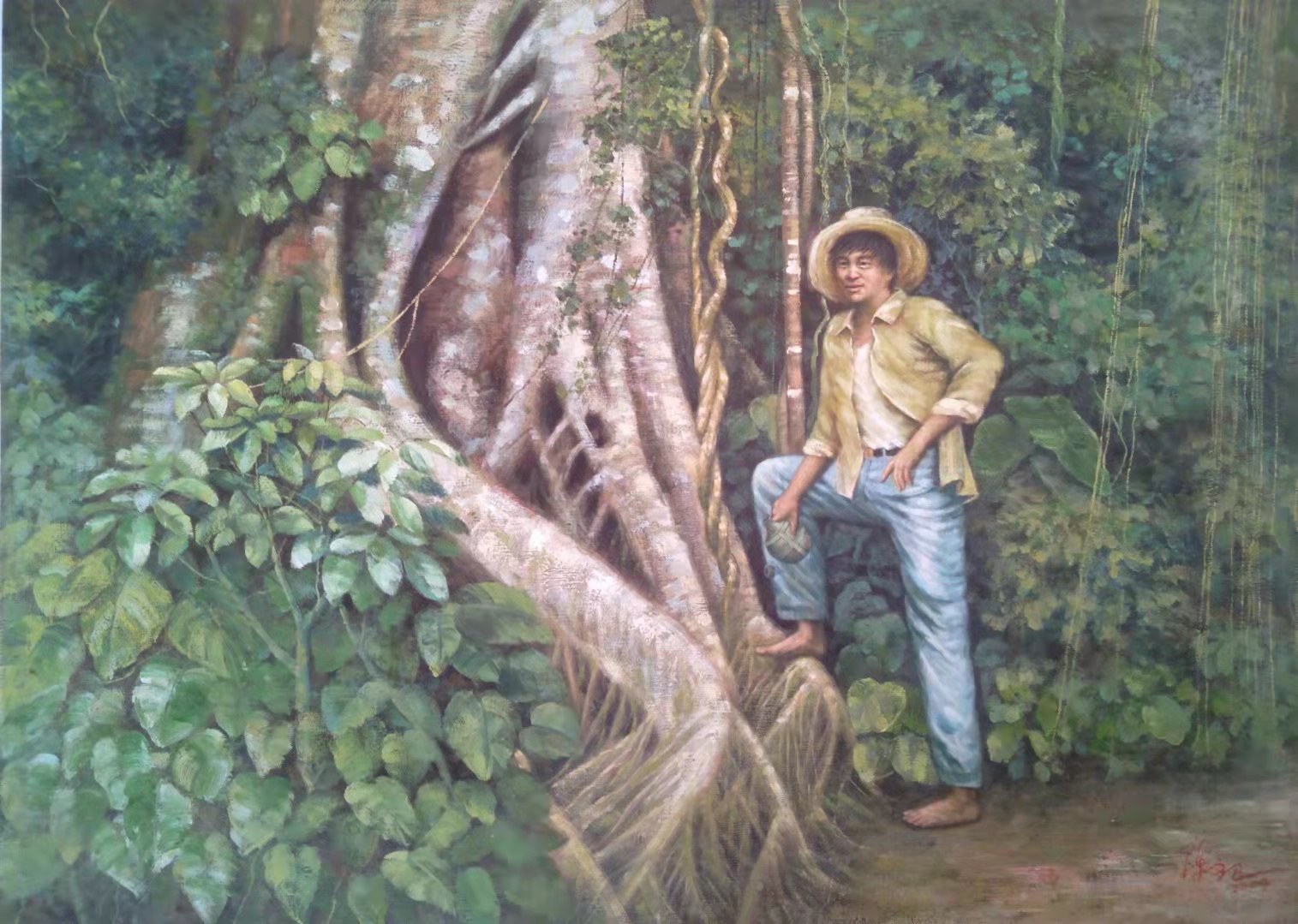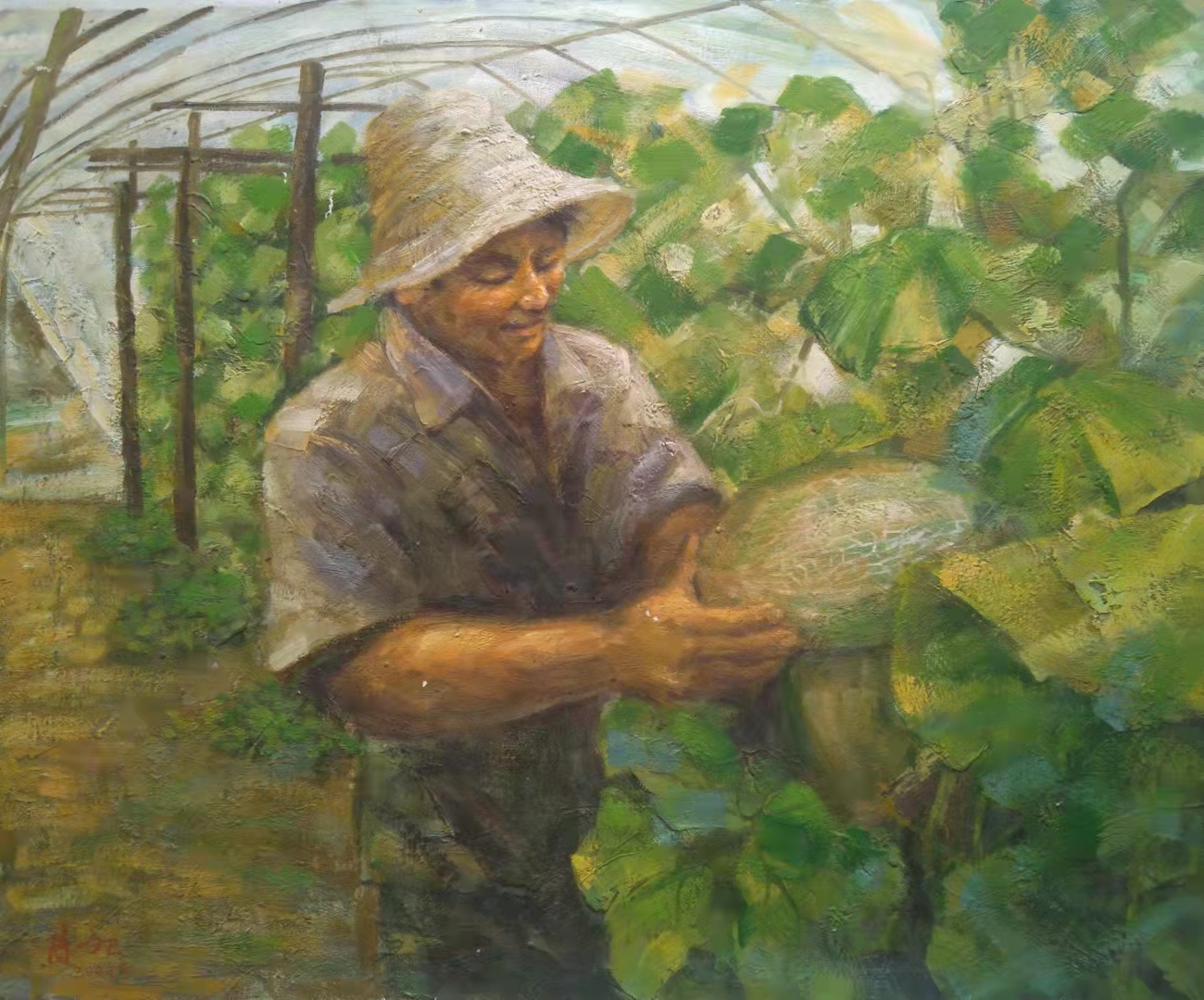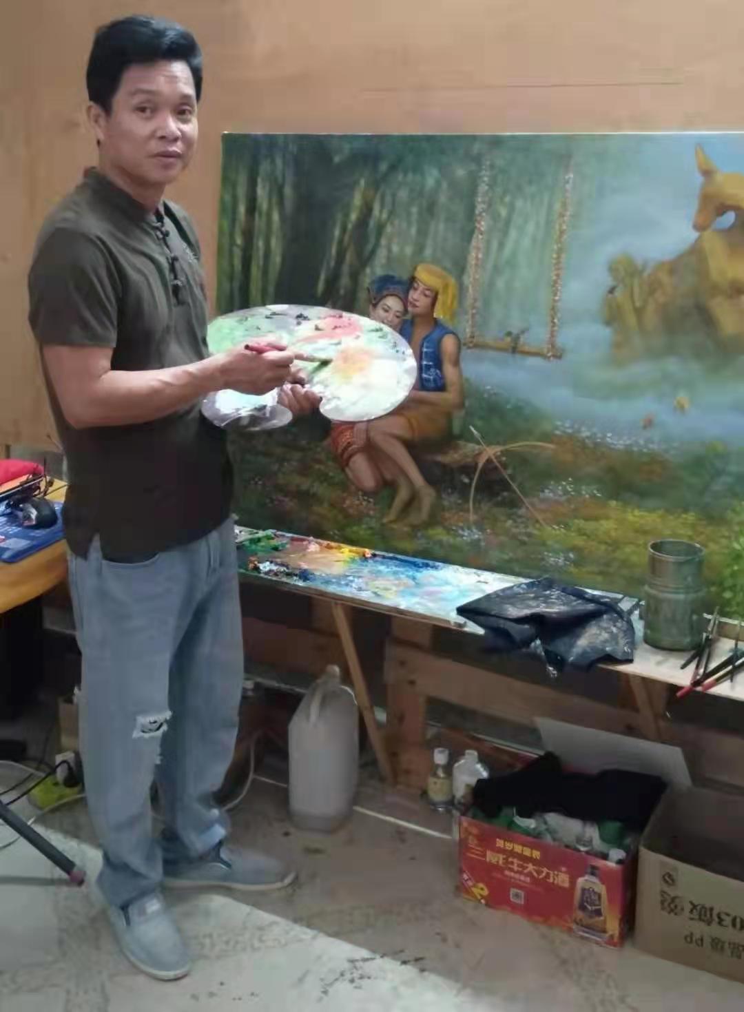 陈文卫,职业画家,1974年生于驰名全国的哈蜜瓜之乡_海南省乐东县佛罗镇,从小家境贫寒,自幼酷爱画画,自学成才,从小学起就成为远近闻名的小艺术家,从临摹伟人肖像到素描、水彩、水粉、国画、油画,甚至剪纸、雕刻等,皆无师自通。长大后为了艺术之梦,他离开家乡,走出海南,一边工作,一边创作……这些年他走过很多地方,先后在深圳艺林画苑、永嘉画廊、东莞、海口、三亚等地的多家公司任职并担任美术老师。30年多来虽然历尽生活的艰辛和现实的严酷,但他从不放下手中的画笔,从未放弃对艺术的梦想和追求,其艺术修养尤其是油画功力不断精进厚实,2004一2014在海口星星艺术有限公司任职,作品在加拿大、意大利多家画廊展出并被买家收藏,2014一2016在三亚华夏文化创意产业基地任职,作品多次参展并获奖:作品《闲暇》2008年入展海南省喜迎十八大美术摄影展并获奖、作品《晚归》2010入展海南第二届少数民族书画作品展、作品2018年入展中国第十一届书画美术网络大赛并获奖……带着家乡深深的眷恋,带着那儿时的梦想,2018年他回到自己的故乡,一边任教一边继续创作,现任乐东县佛罗镇红日艺术培训中心美术、书法老师。