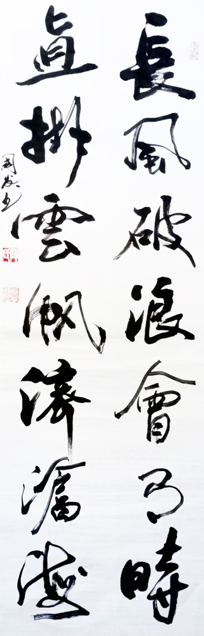 今日的薛国发先生,虽然已有诸多殊荣加身,但在他的心底,却还始终保持着一股澄澈的艺术初心。尤其是在他的众幅书法作品上,这一点更是极为明显!其书尤以行草最为至臻,先生作行草乃是深汲于米芾之余韵,但作中却又丝毫不失于自我格调,是谓书中有贵气,笔墨有精神也!于常人俗笔而言,写行草必然会呈现出一股浮躁之气,这既是功夫不到家的原因,亦是修为不够深的结果!但今日纵观薛国发先生行草书法,作中却是未见一分一毫的浮躁之气,字字更没有任何的唐突之意,有的只是一股潇洒而不失于法度,极逸而不失于和谐的风骨意味!观之尤可叹功法至深矣!