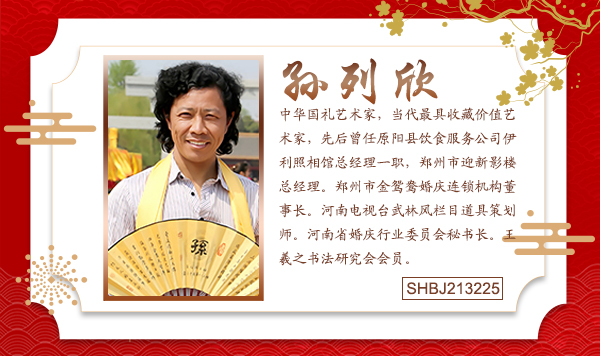 孙列欣,字无涯,号,孤枫。斋号,枫杨书院1968年出生于河南省(张苍故里,古官渡之战旧址)原阳县。中华国礼艺术家,当代最具收藏价值艺术家,2021当代中国书画百杰。