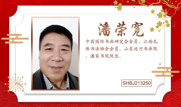 潘荣宽,字文达,六三年生人,北师大研究生学历,一直从事美术书法教育工作和创作,作品多次参加国内外展览并获奖,现为中国国际书画研究会会员,江西毛体书法协会会员,山东运河书画院,潘家书院院长。