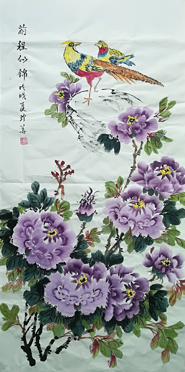 我从小爱写写画画。退休后参加省老干大学,学习写字绘画,师从书法老师印华江,花鸟画教 授孔仁和,我执着绘画写意牡丹,牡丹象征富贵吉祥。后改为专学画牡丹,在我学习研究牡丹创作中得到湖南花鸟画大 师伍祥干的指教,并指点我到河南洛阳,在洛阳拜了牡丹画家高全中老师为师,同时得到书画名家彭志运老师指点。在潜心研习牡丹创作中,师法古人,根植传统,不溥今人,贴近自然,深入生活,勤学苦练,勤于思考,在写意牡丹创作探索中,渐得心源,遂步形成了自己的牡丹风格。
