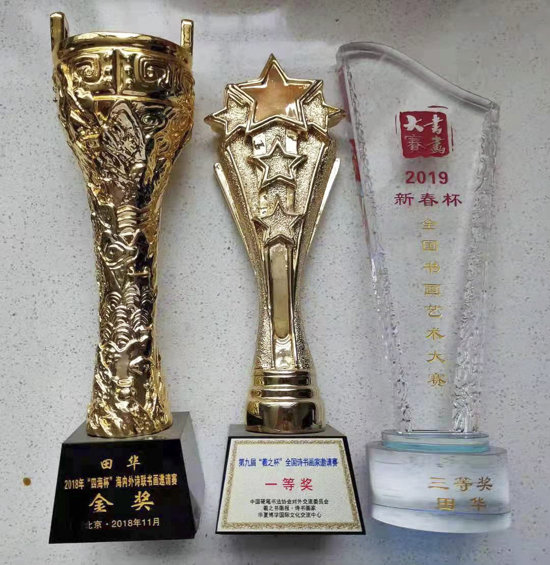 详情请百度搜索书法家田华或中国书画名家网、百鸣网、山东省老干部之家书画网、王羲之研究会等网站。