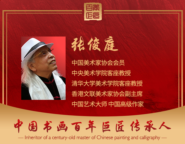 张俊庭——中国美术家协会会员 中央美术学院客座教授 清华大学美术学院客座教授 香港文联美术家协会副主席 中国艺术大师 中国高级作家 世界艺术大师 酣放画派宗师 国家艺术六大国宝艺术家 全球最具影响二十位艺术家 最具投资价值的十大艺术名家 中国书画现当代艺术流派宗师 国家一级美术大师 中华国礼艺术大师 2017年被中国作家协会、中华人民共和国文化部等评为首届全国翰墨名家 。