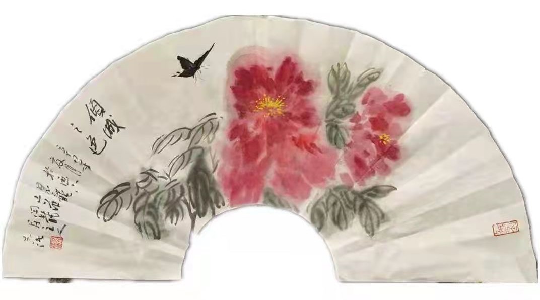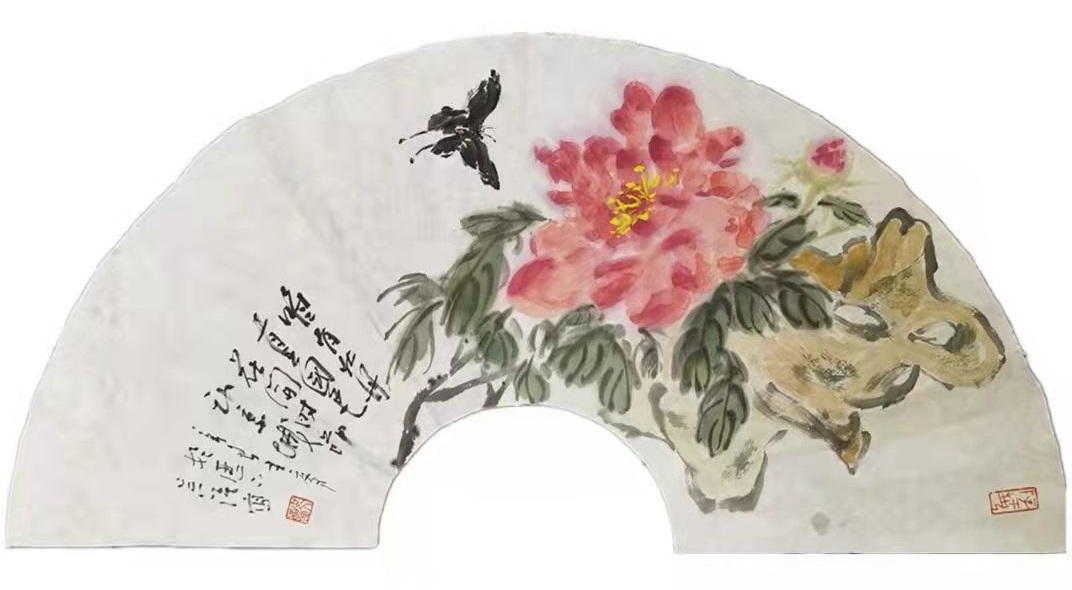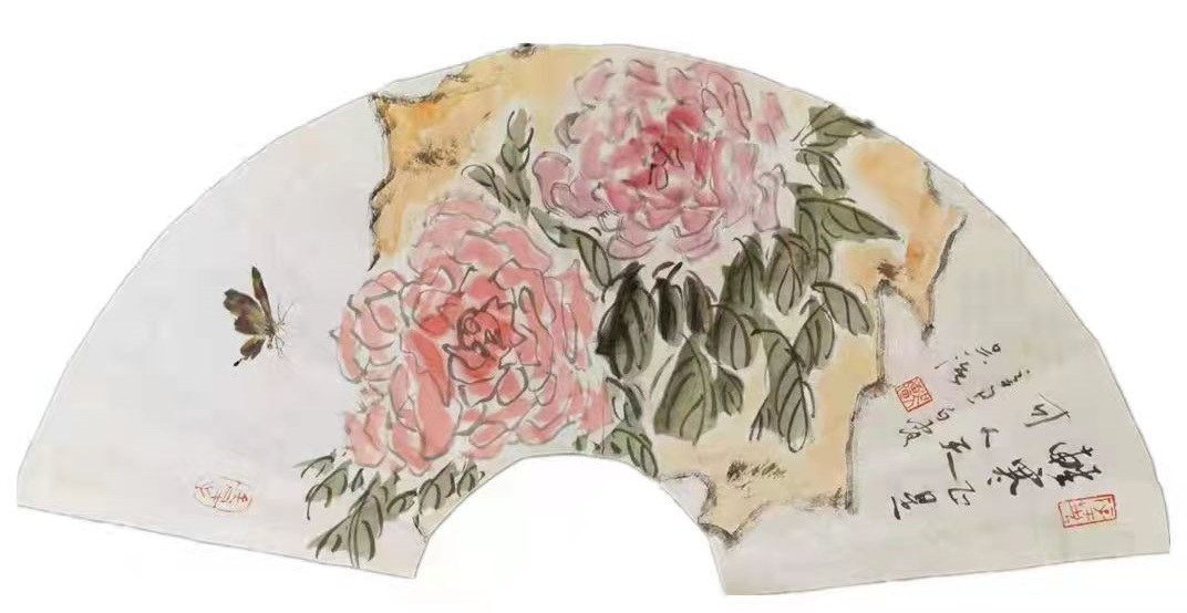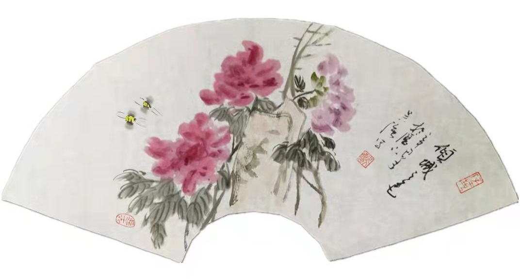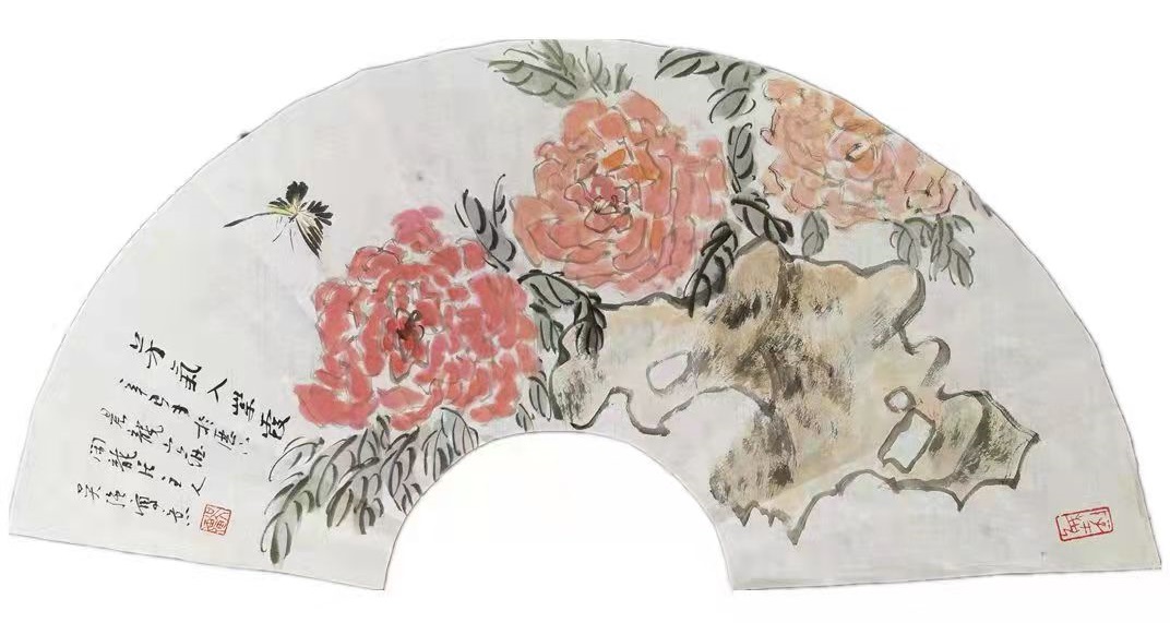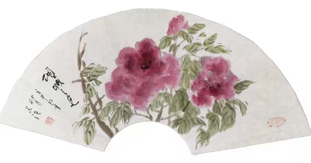 一一著名画家吴强先生写意牡丹扇面赏析